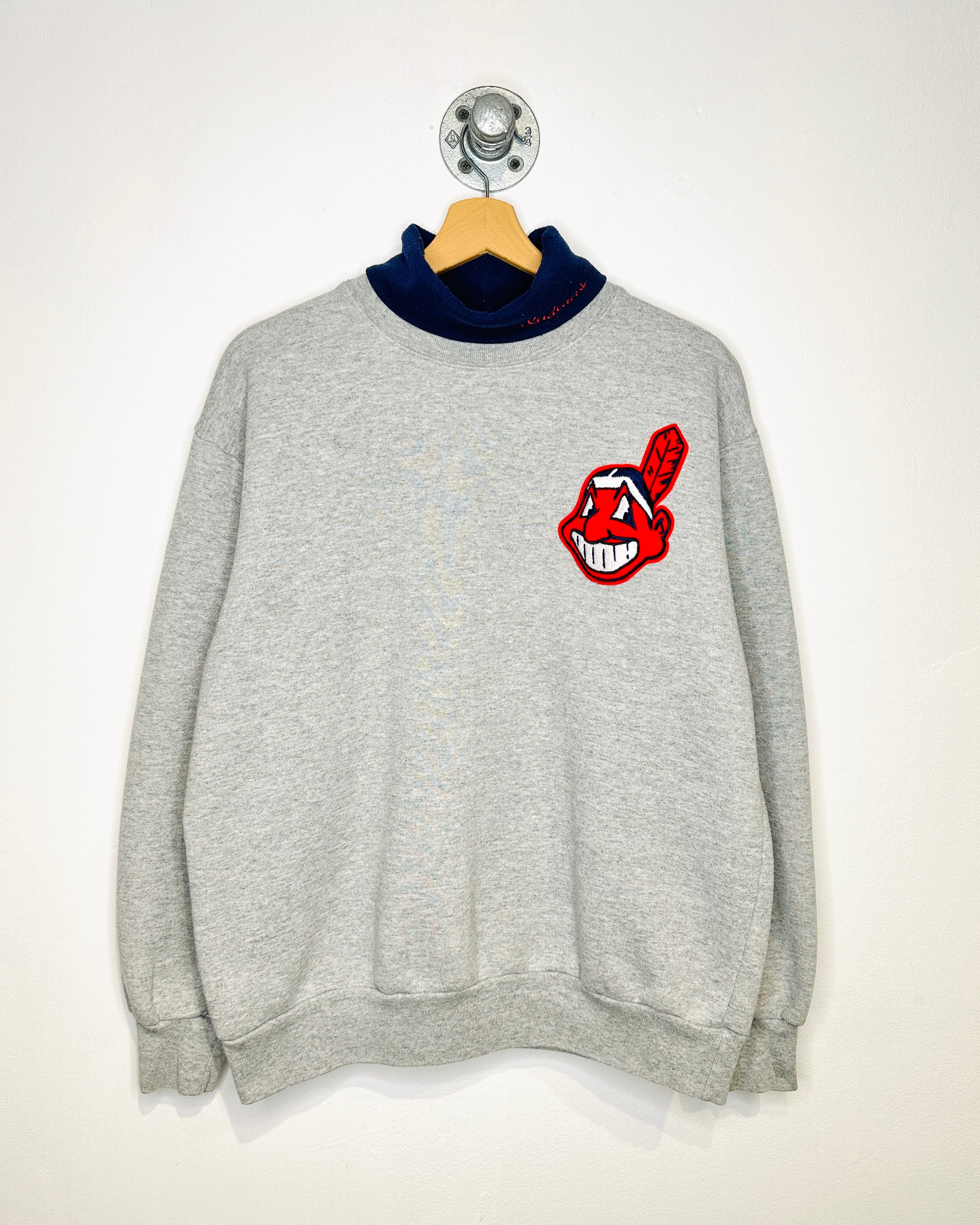 Vintage 90s Cleveland Baseball Grey Turtleneck Sweatshirt