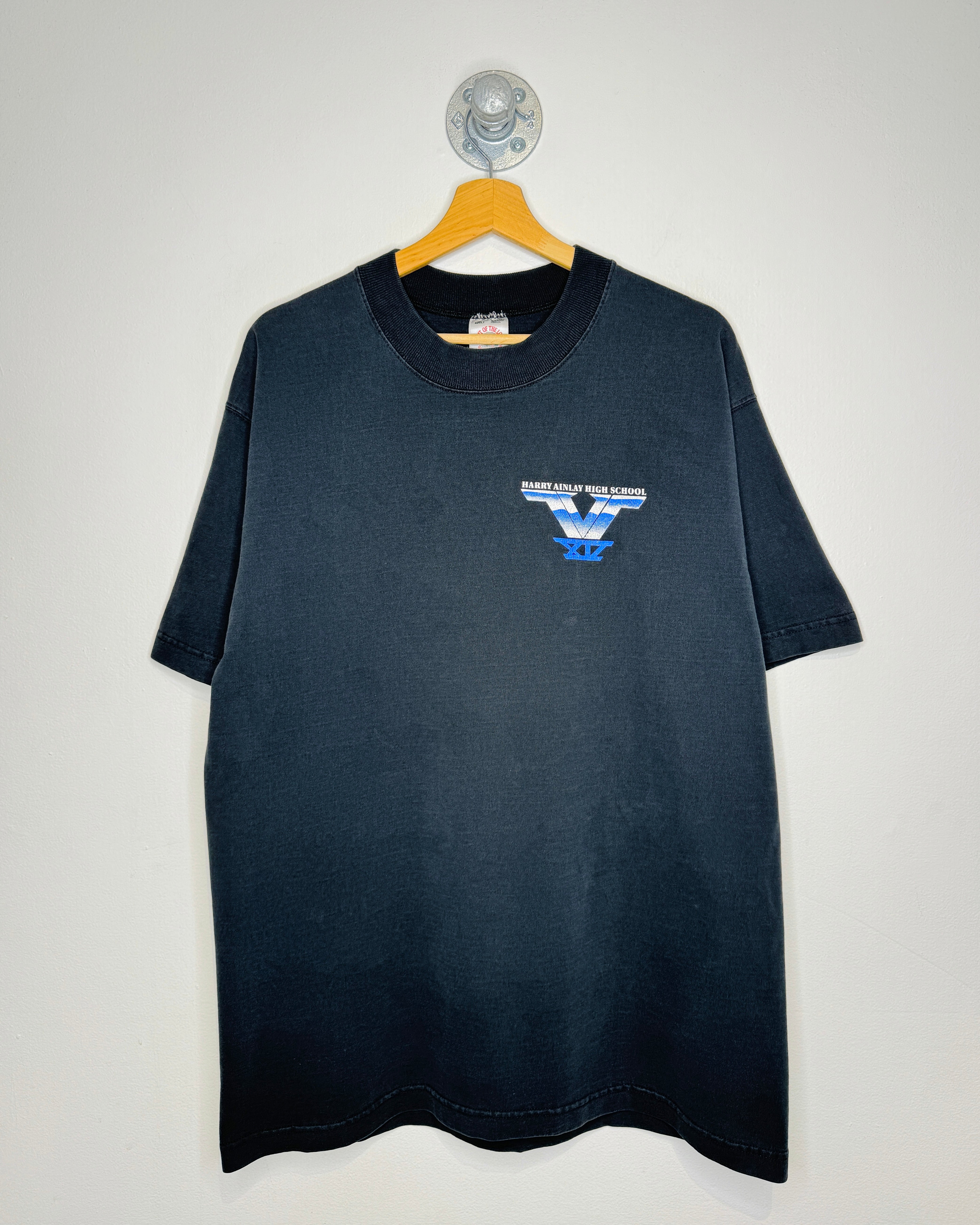 Vintage 90s Harry Ainlay Highschool Faded Black Tee Shirt