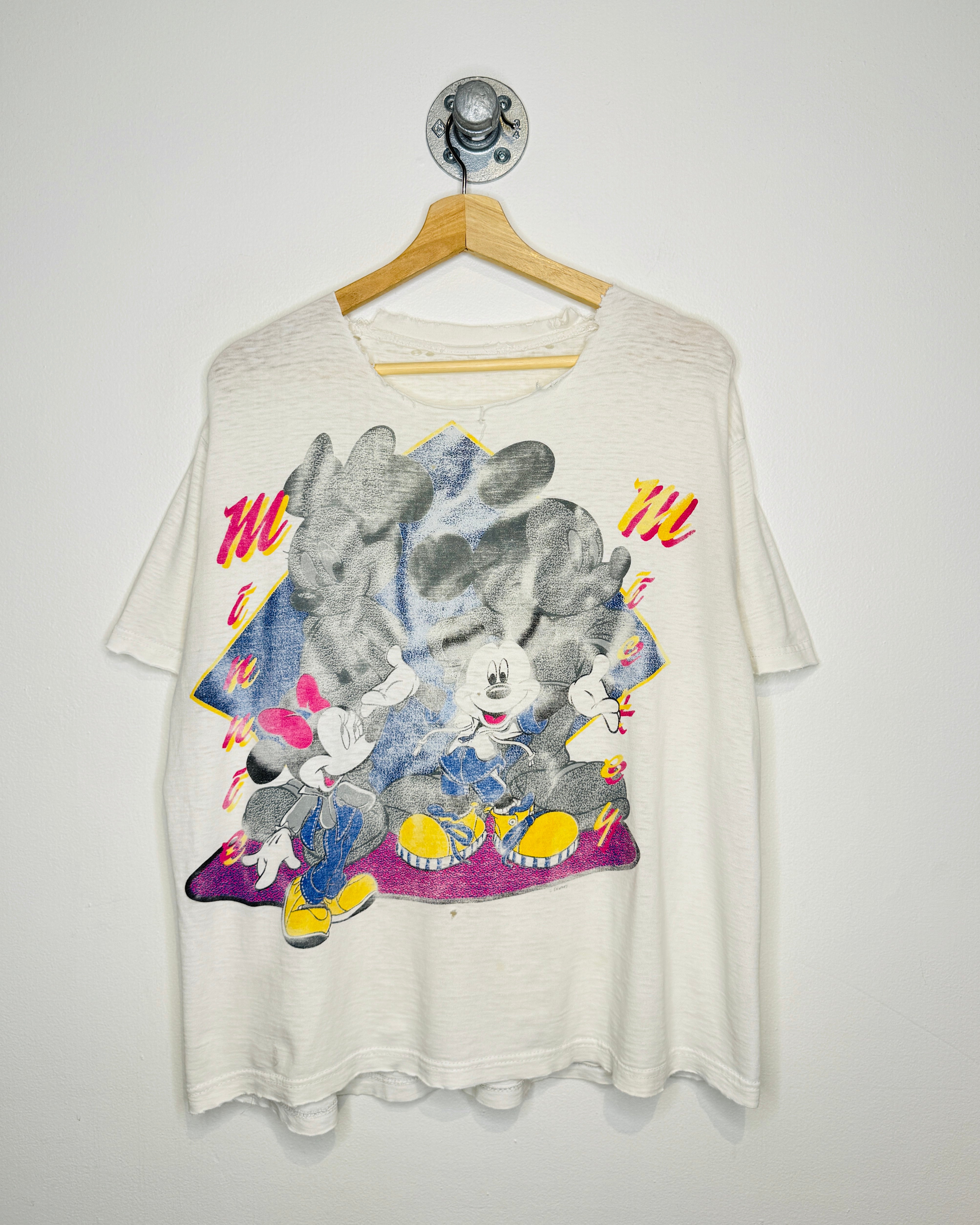 Vintage 90s Minnie & Mickey Mouse Distressed White Tee Shirt
