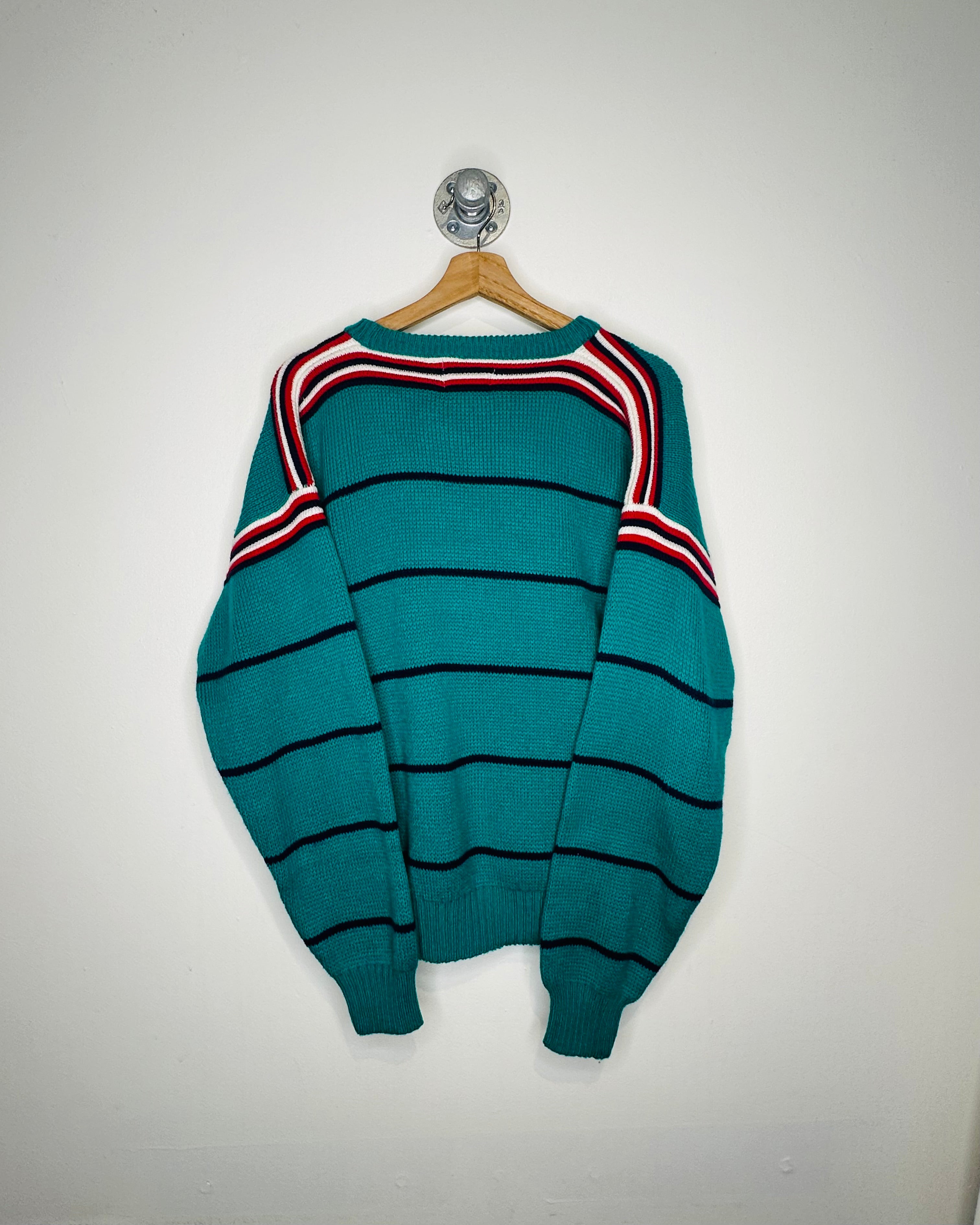 Vintage Atlantic Traders Green Striped Knit Sweater