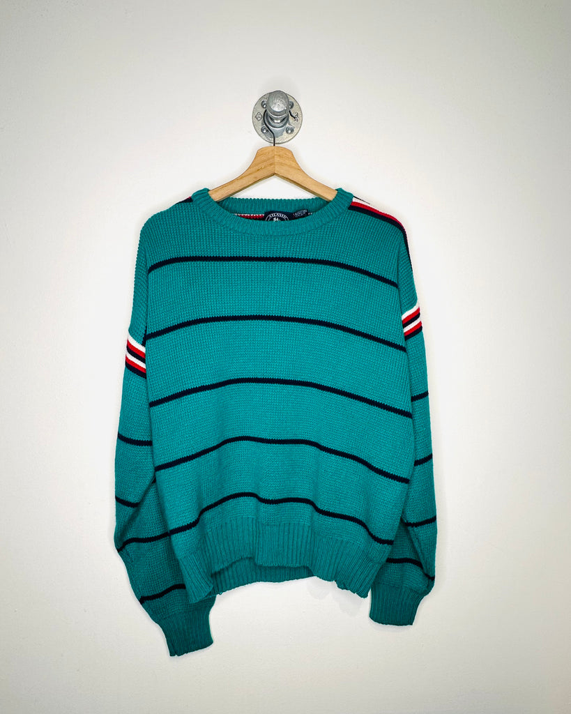 Vintage Atlantic Traders Green Striped Knit Sweater