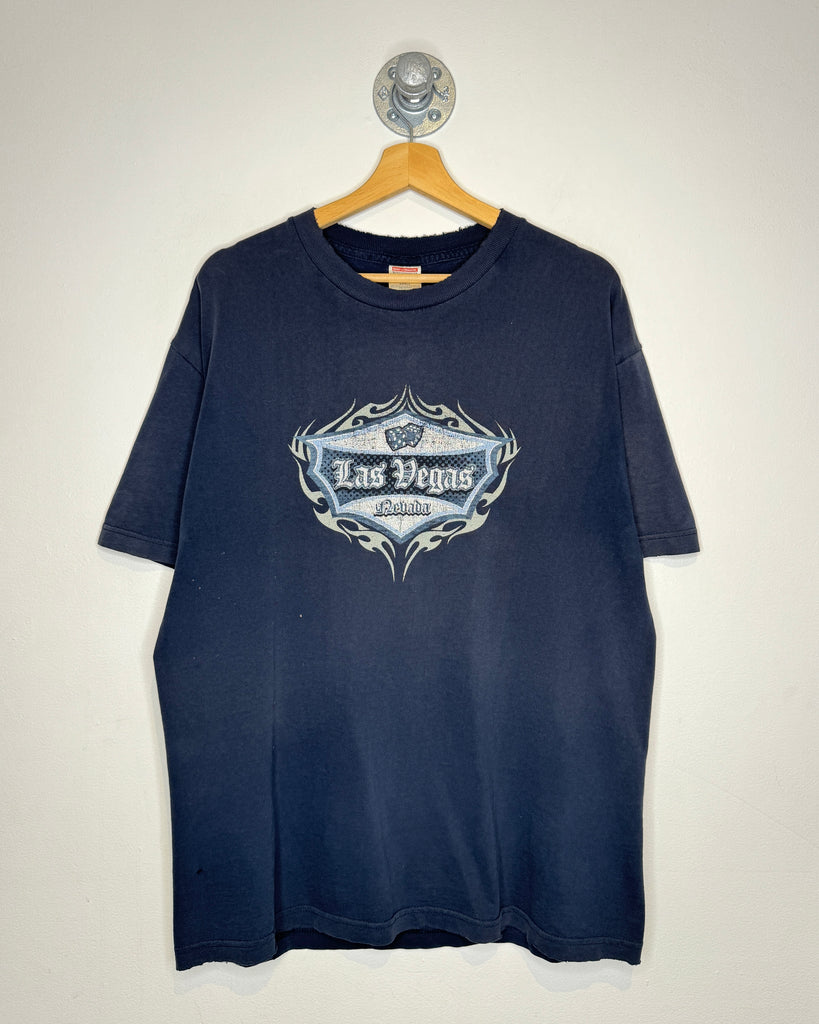 Vintage Y2K Las Vegas Faded & Distressed Black Tee Shirt
