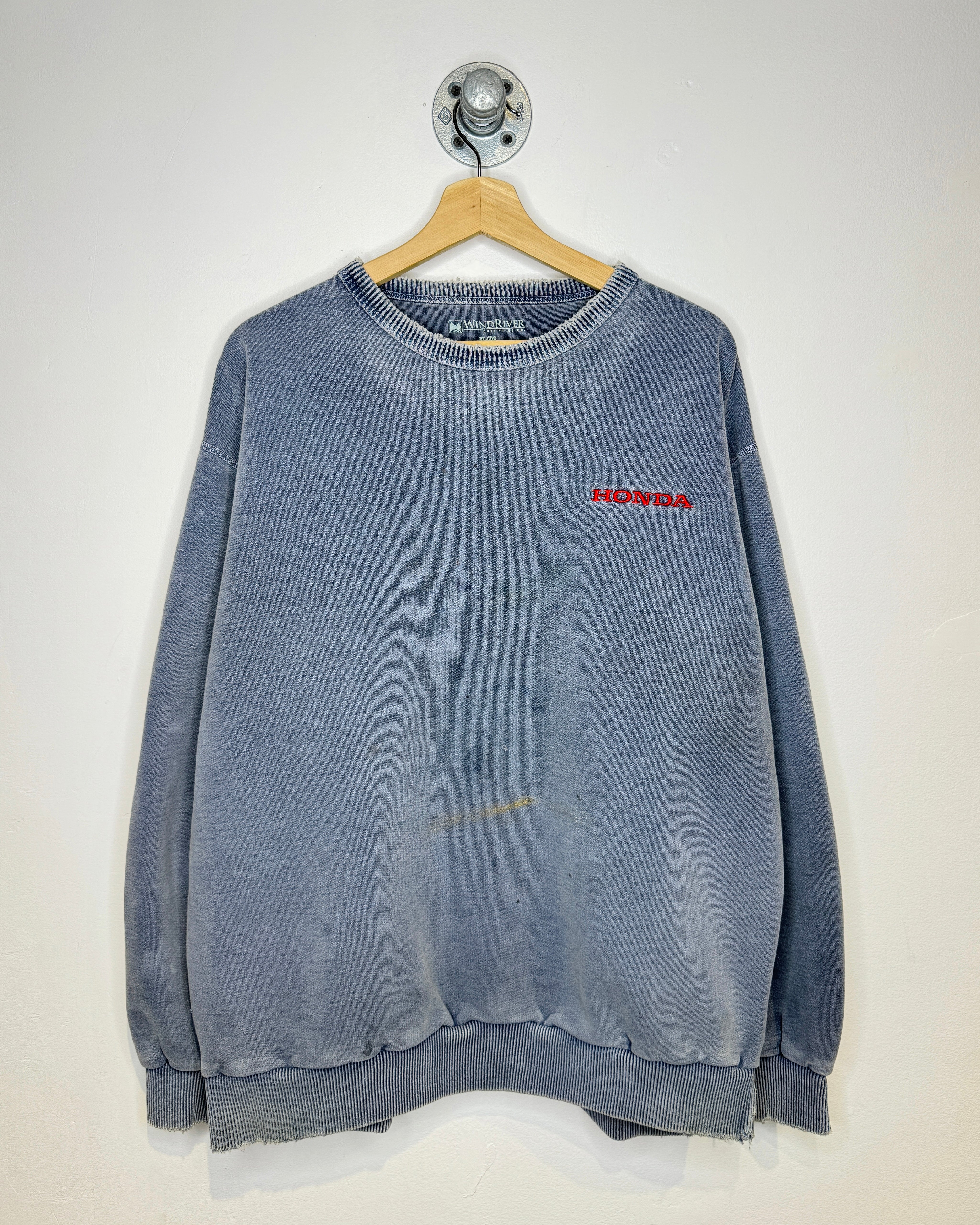 2000s Honda Distressed & Faded Blue Crewneck Sweatshirt