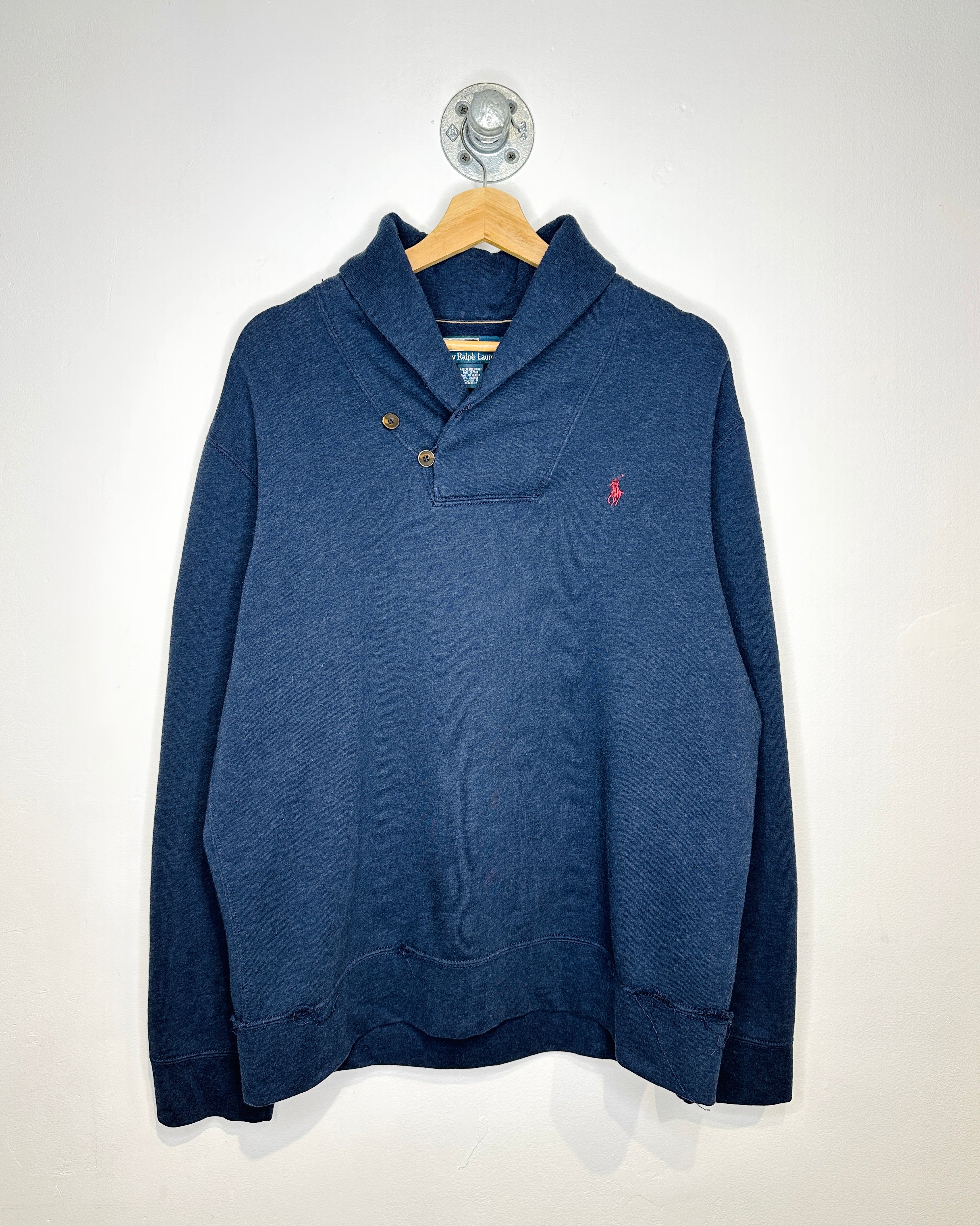 2000s Polo Ralph Lauren Shawl Collar Navy Sweatshirt