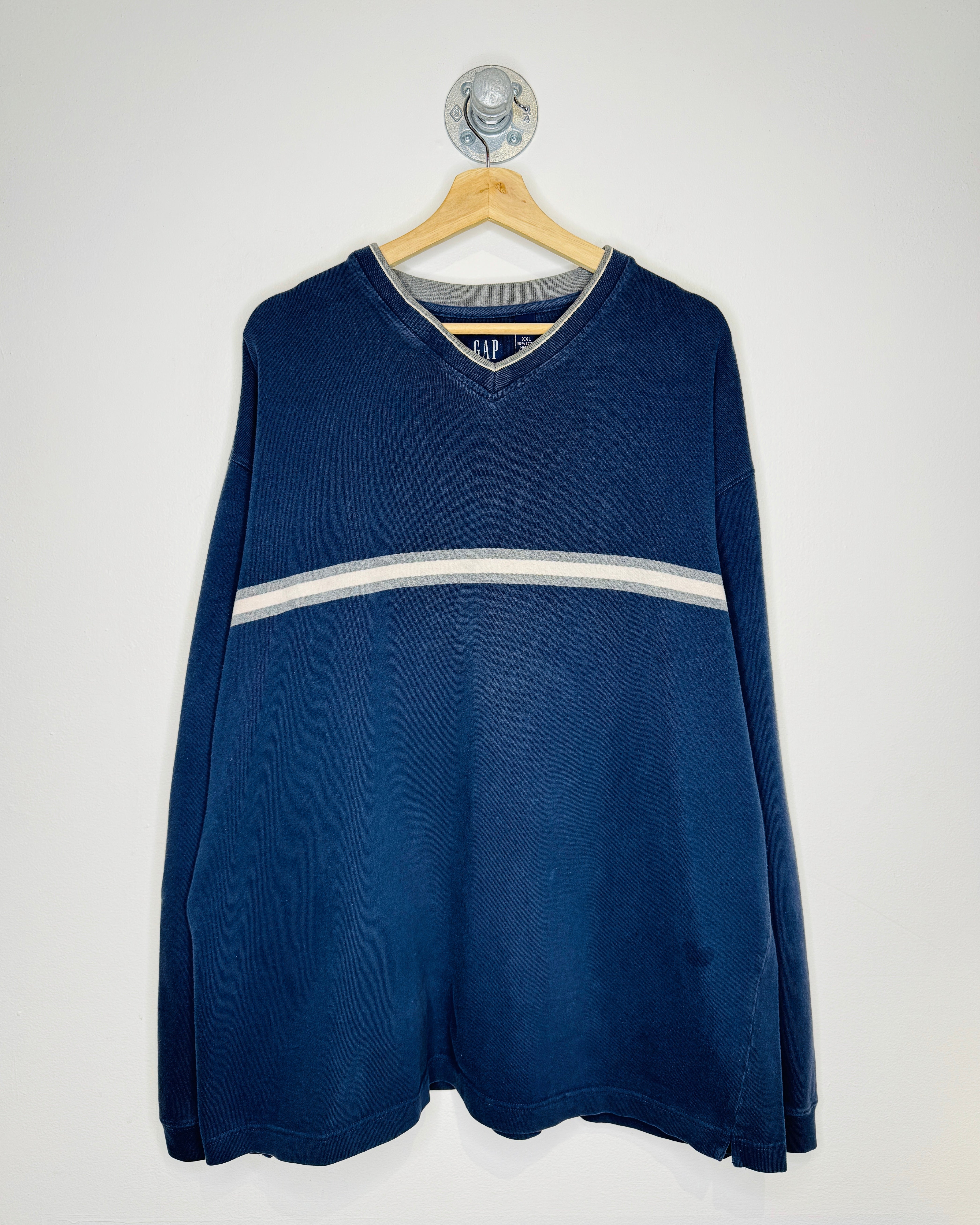 Vintage GAP Striped Faded Navy V-Neck Sweatshirt