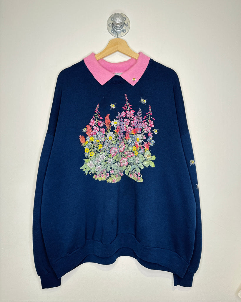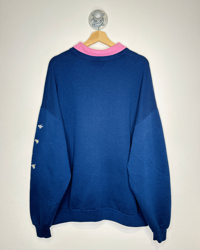 Vintage 90s Bumble Bees Navy Collared Sweatshirt