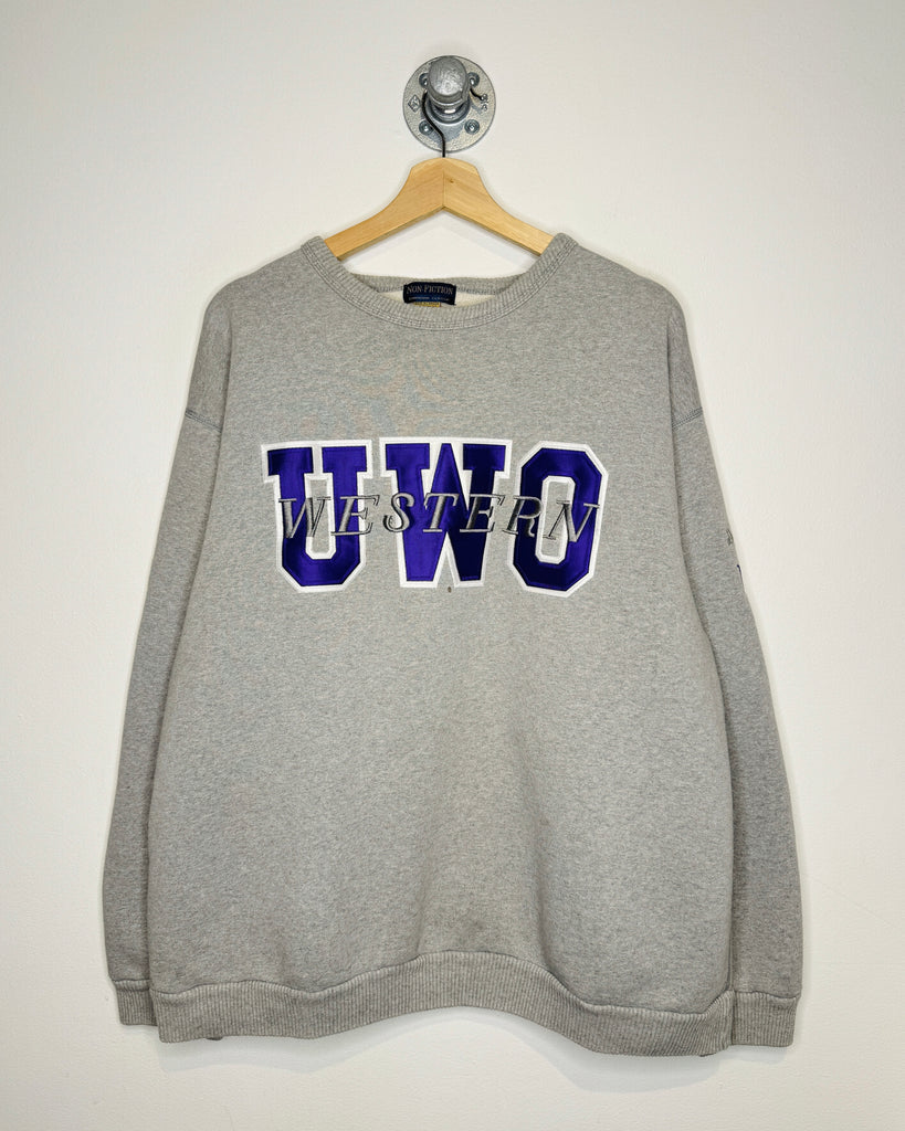 Vintage 90s Boxy UWO Western Grey Crewneck Sweatshirt
