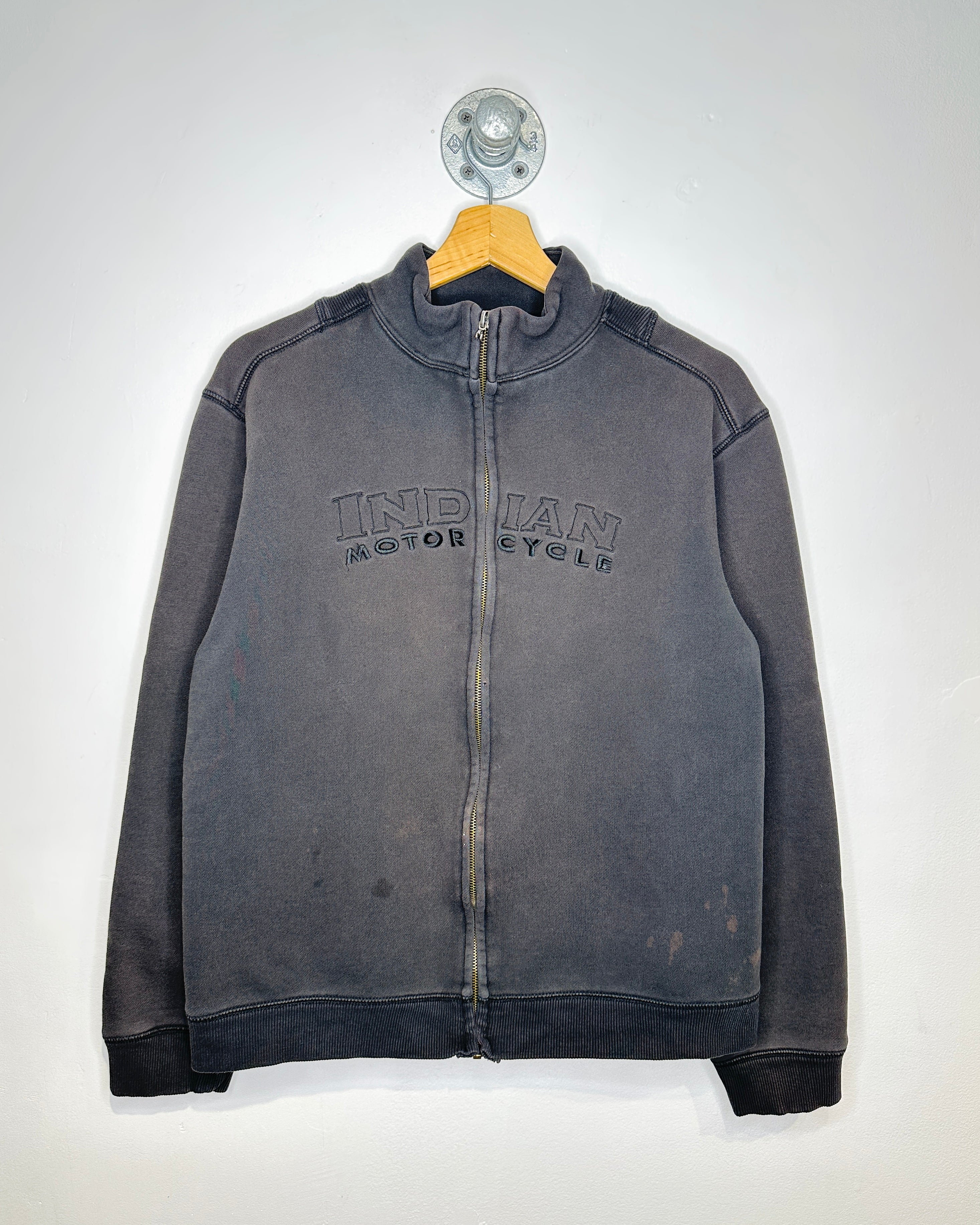 2000s Indian Motorcycle Tonal Faded Black Zip Up Sweatshirt