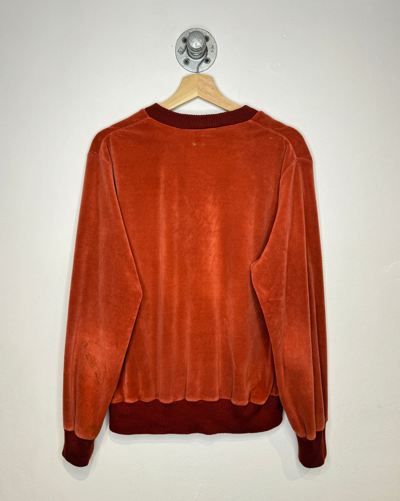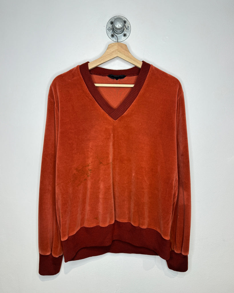 Vintage 70s St. Michael Orange Velvet V-Neck Sweater
