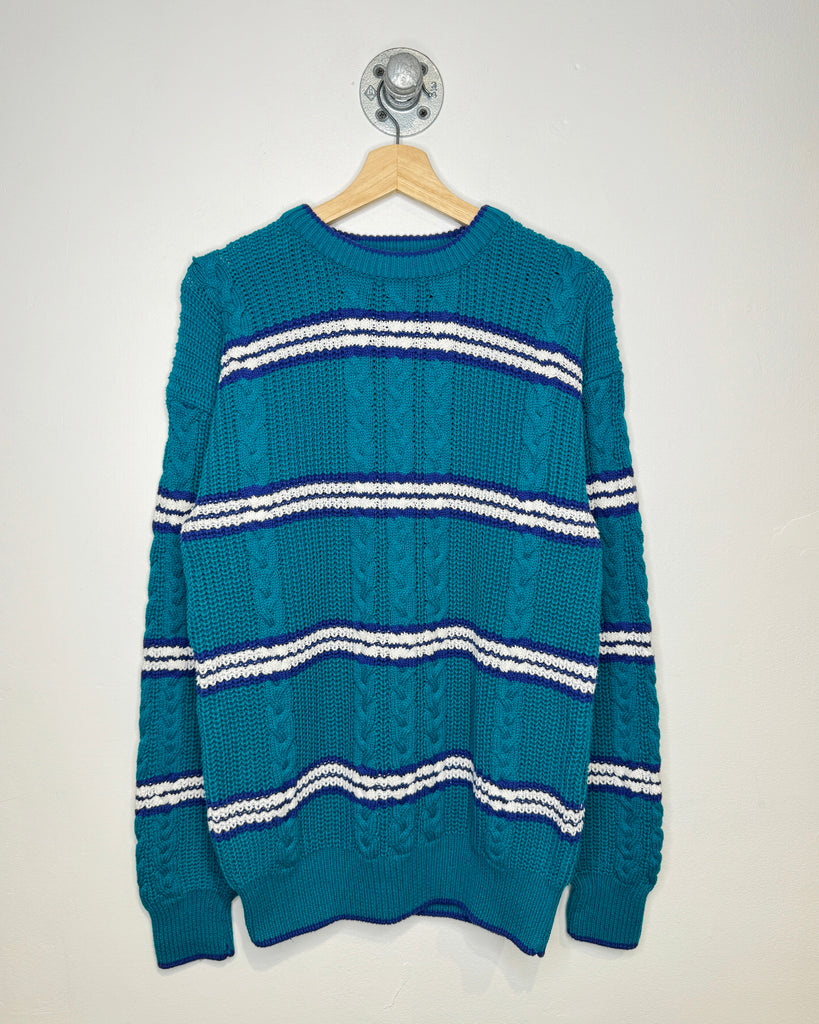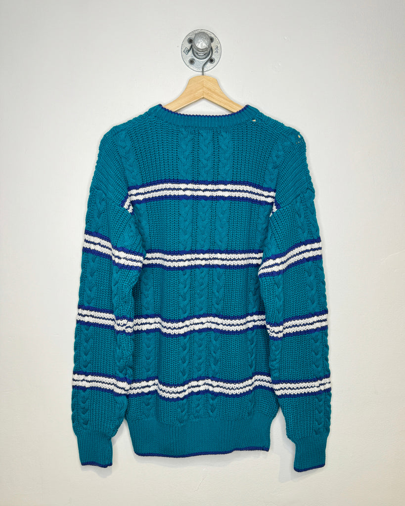 Vintage 90s Claybrooke Teal Cable Knit Sweater