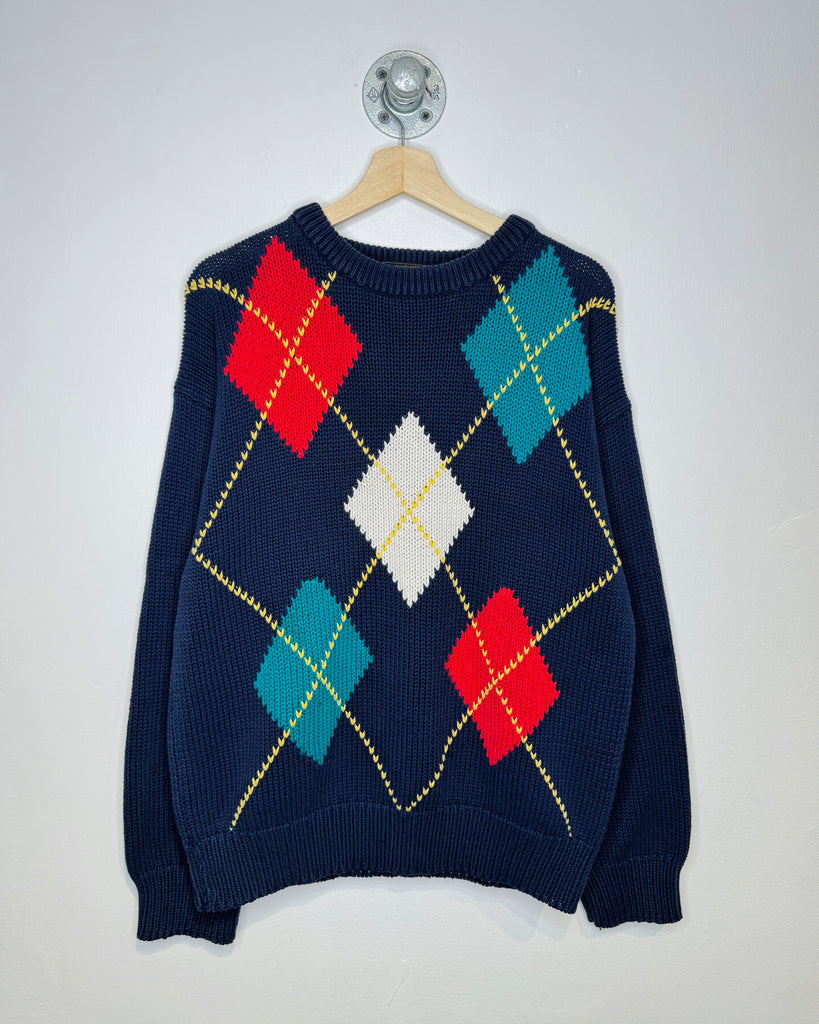 Vintage 90s Eddie Bauer Argyle Pattern Navy Sweater