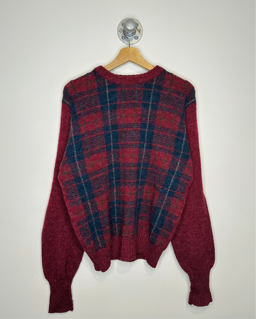 Vintage 90s L.L Bean Red Plaid Wool Sweater