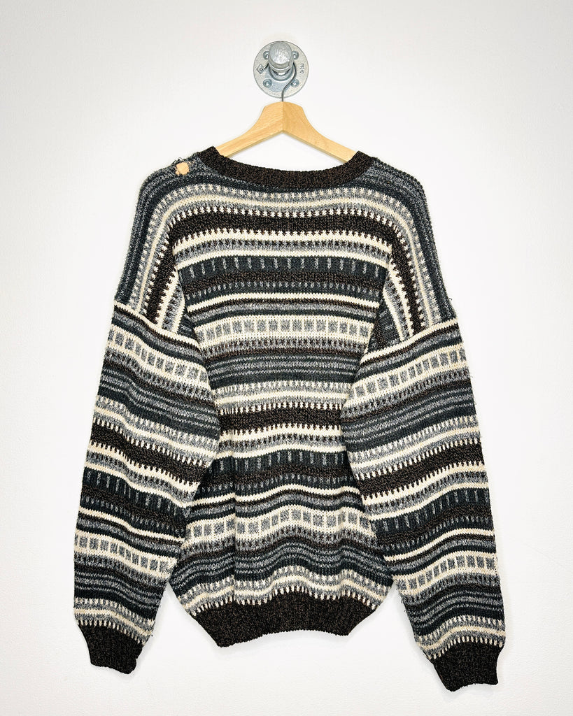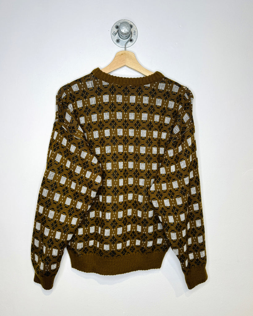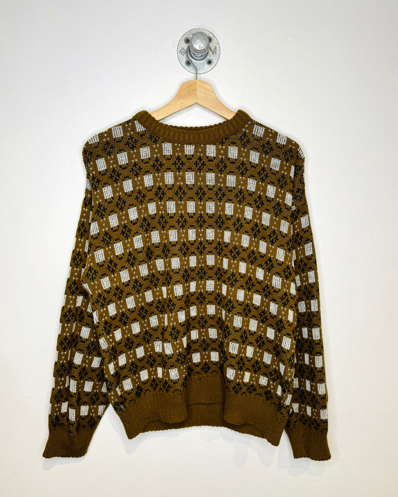 Vintage 90s Brown & White Patterned Knit Sweater
