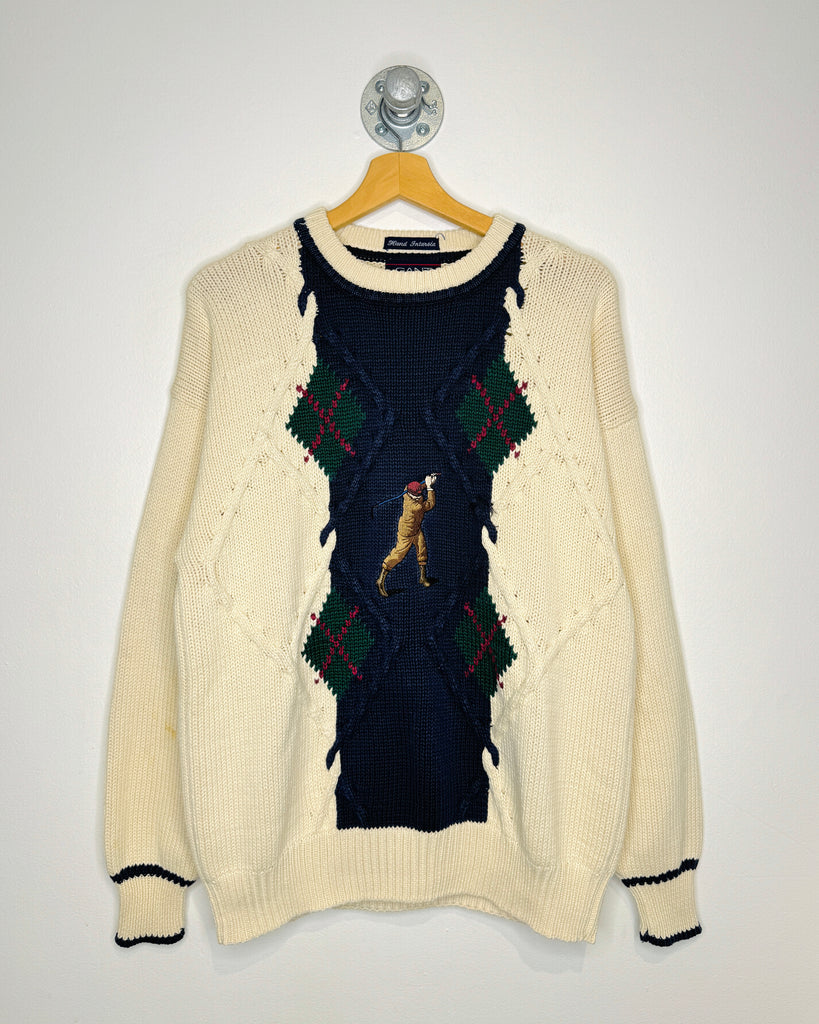 Vintage 90s Gant Golfer Cream Cable Knit Sweater