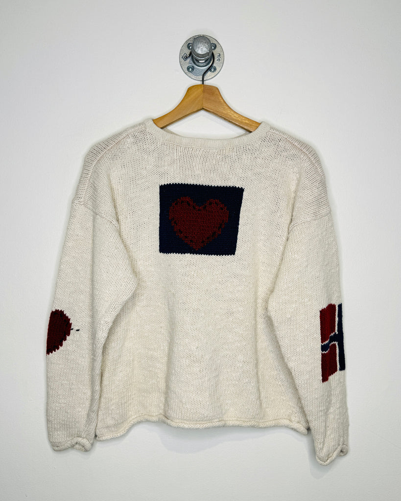 Vintage 90s Hand Loomed White Knit Sweater