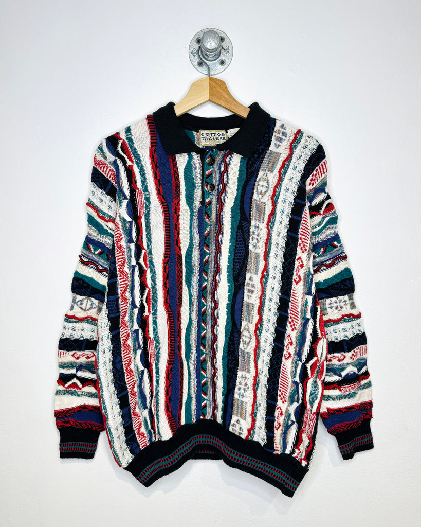 Vintage 90s Cotton Traders Coogi Style Collared 3D Knit Sweater