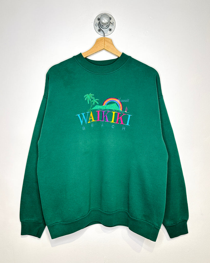 Vintage Waikiki Beach Green Crewneck Sweatshirt