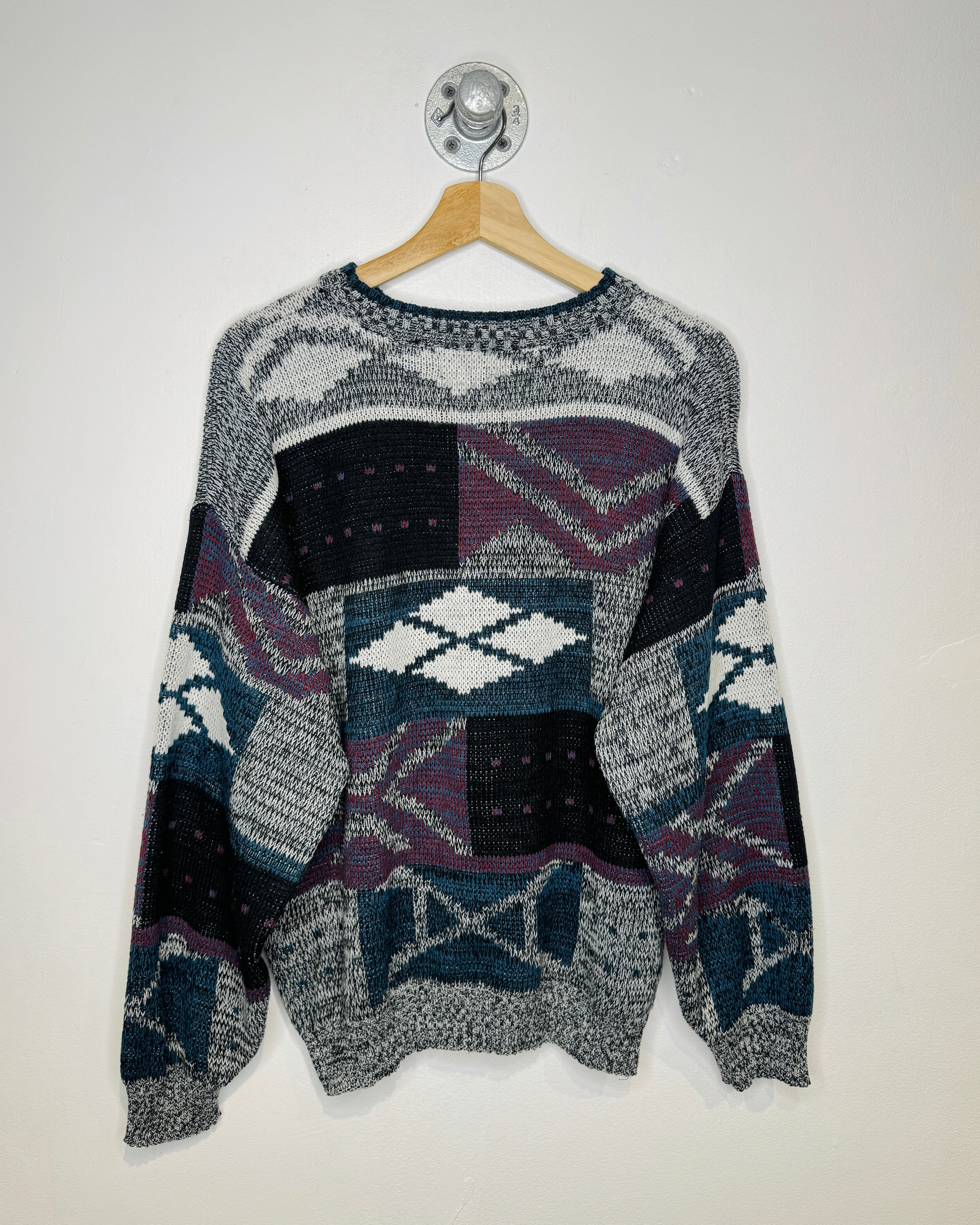 Vintage 90s “Perspective” Abstract Knit Sweater