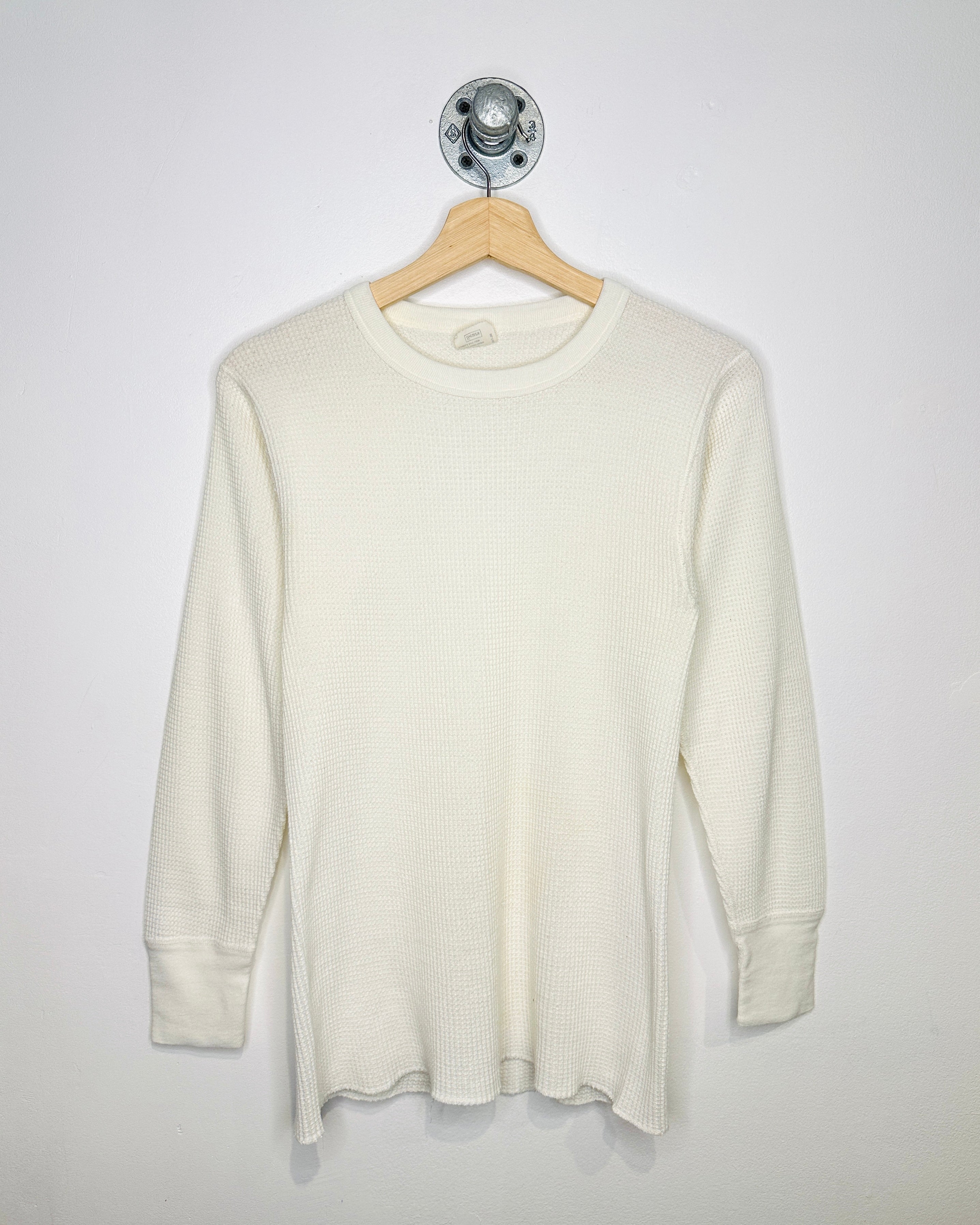 Vintage 80s Sears White Waffle Knit Longsleeve Shirt