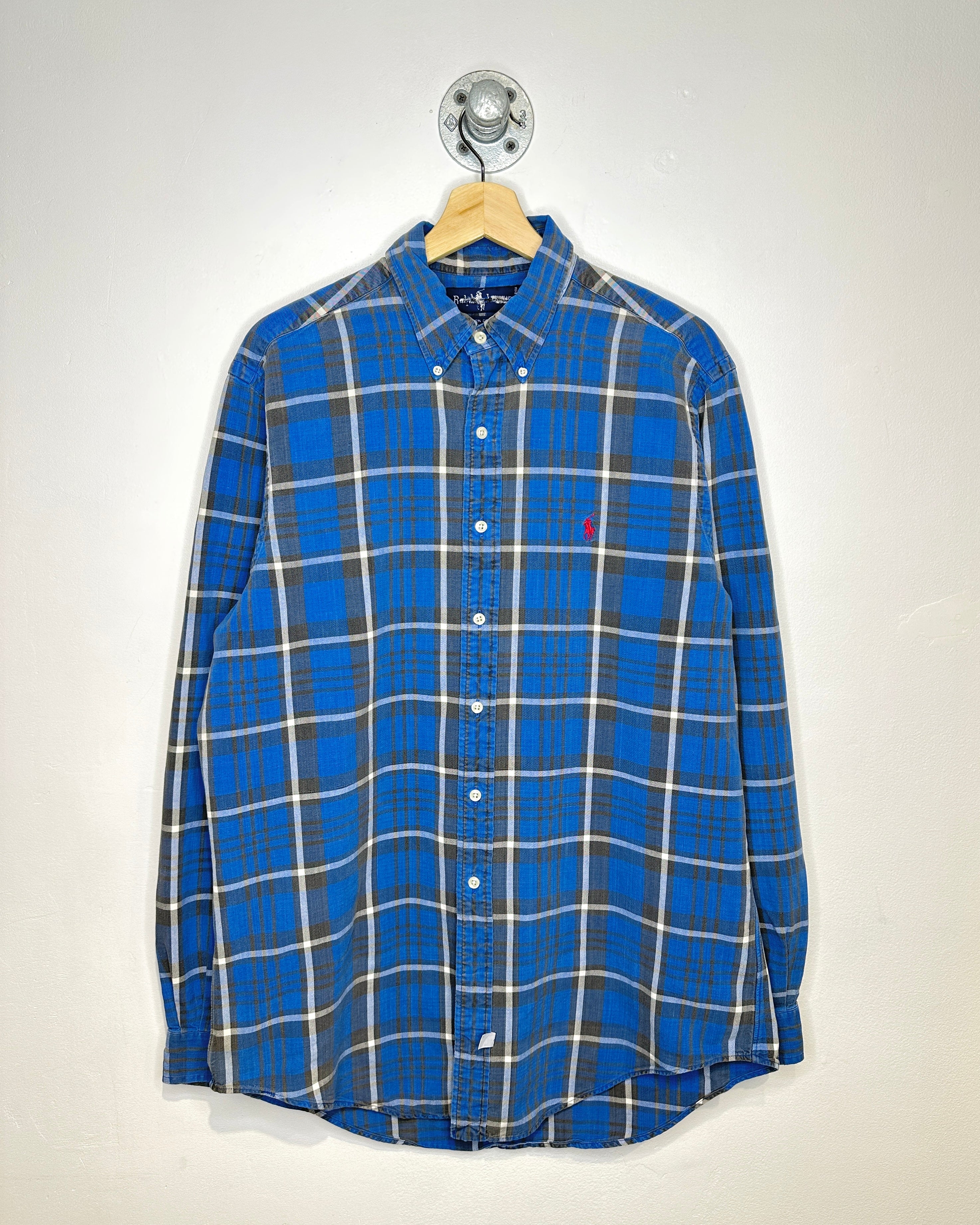 Vintage Ralph Lauren Faded Blue Plaid Button Up Shirt