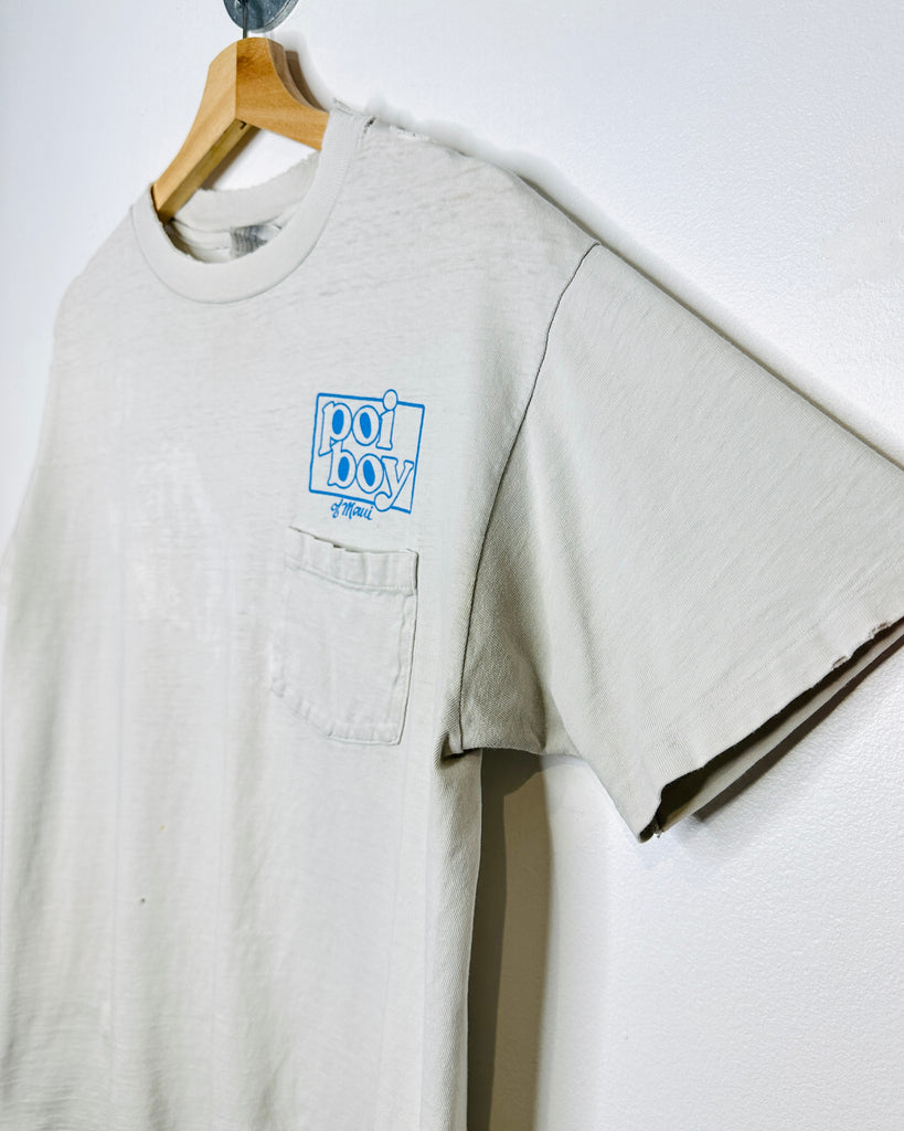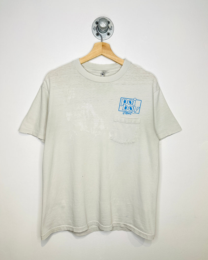 Vintage 90s Poi Boy Of Maui White Distressed Pocket Tee Shirt