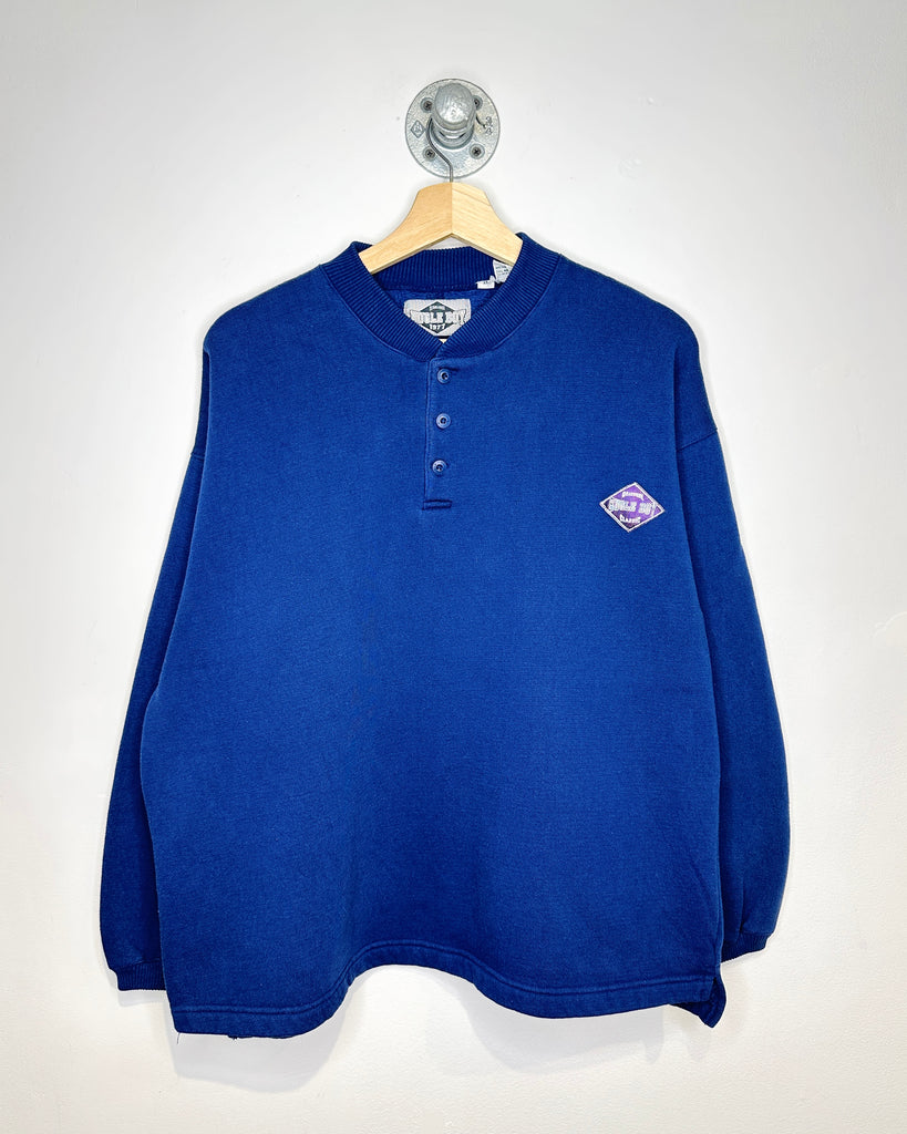 Vintage 90s Boxy Bugle Boy Navy Henley Sweatshirt