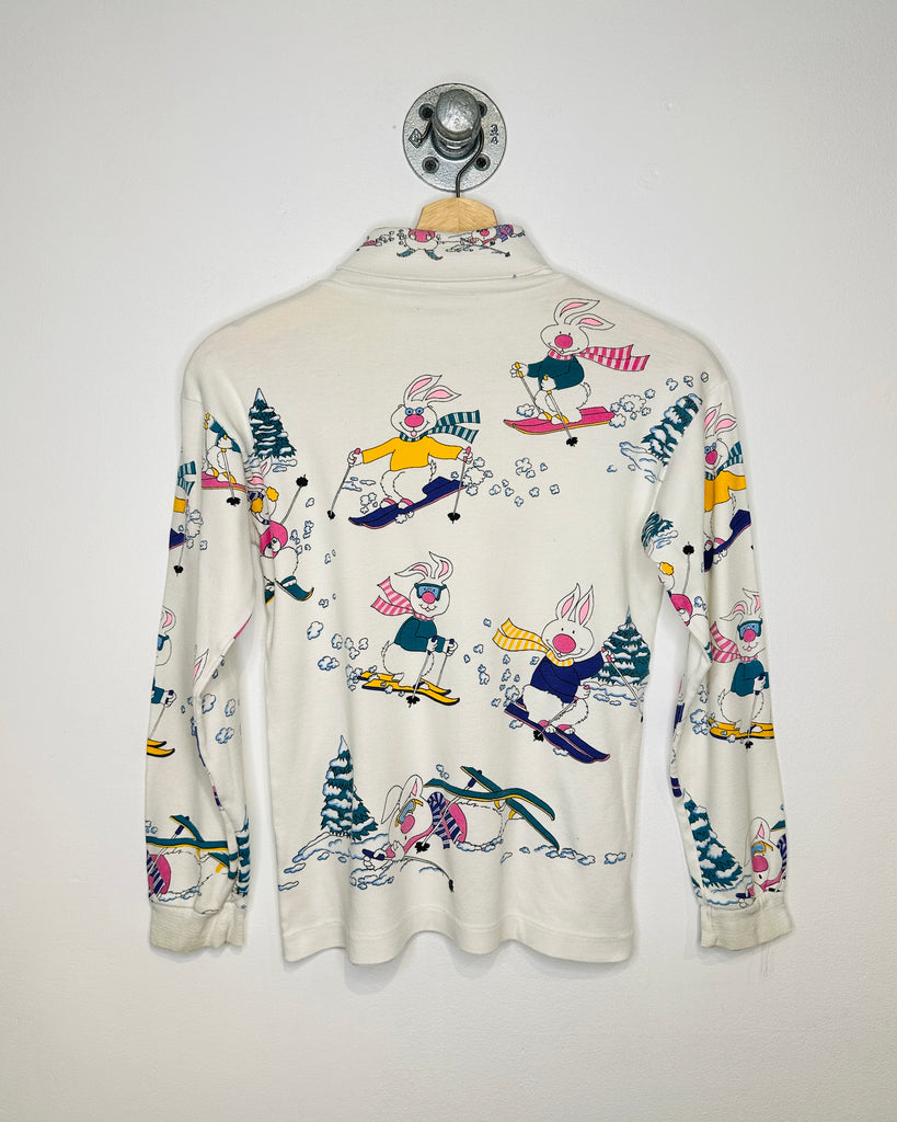 Vintage 90s Skiing Bunny White Turtleneck Shirt