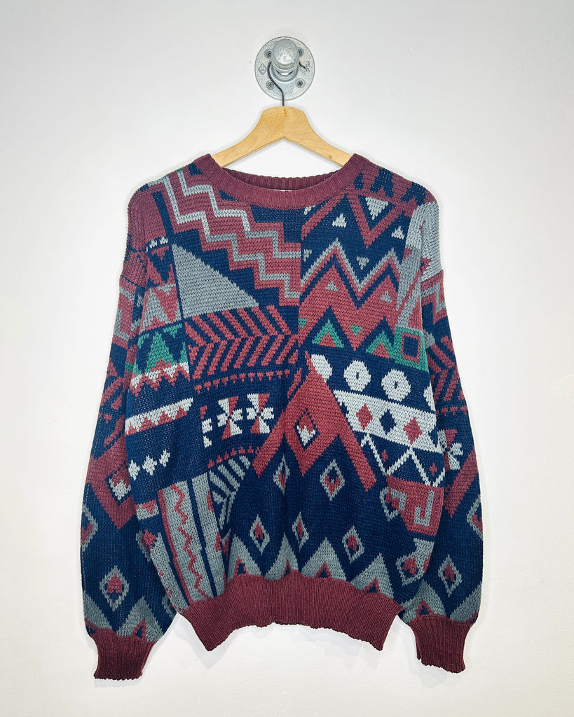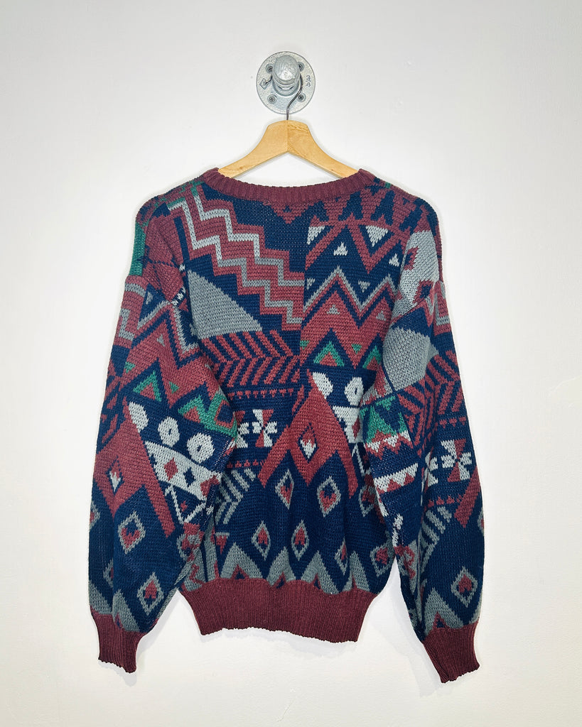 Vintage 90s Fellini Abstract Maroon Knit Sweater