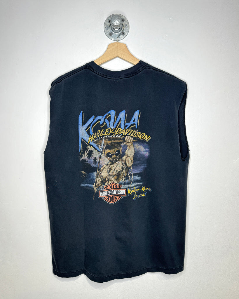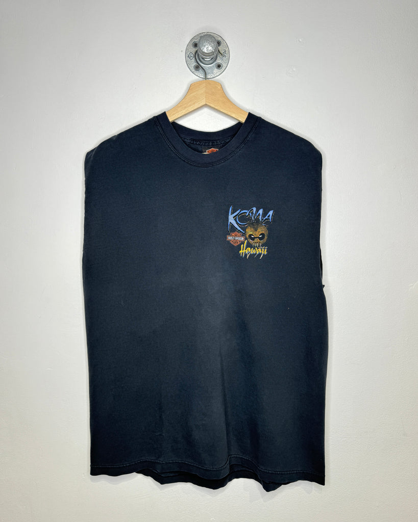 Vintage Harley Davidson Kona Hawaii Black Cut Off Tank Top