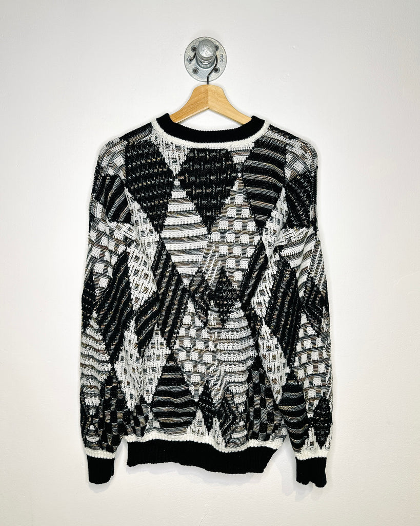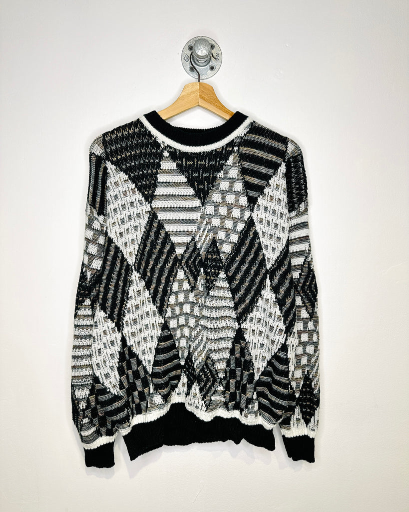 Vintage 90s Alan Stuart Abstract Black Knit Sweater