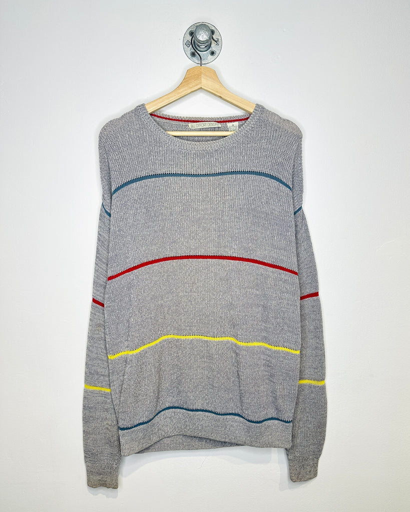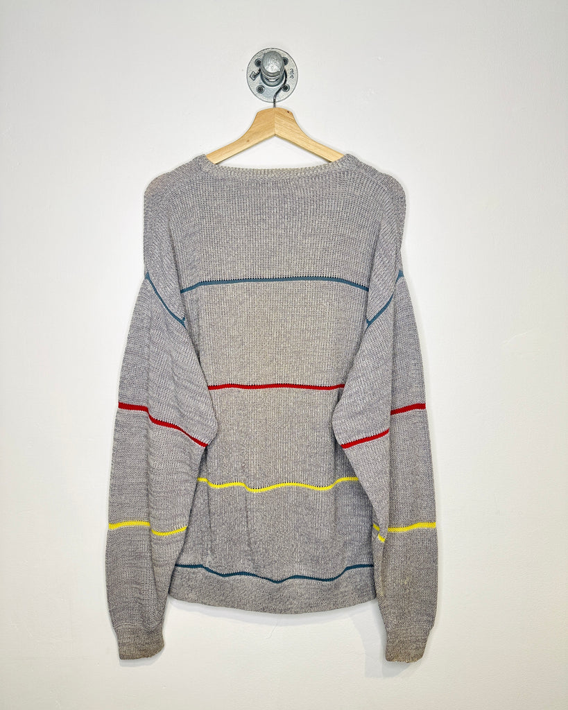 Vintage 90s Grey Multicoloured Cotton Knit Sweater