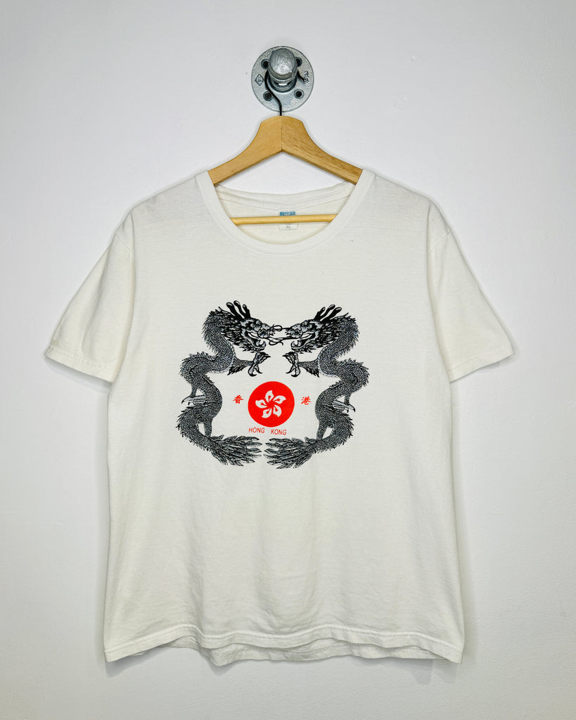 2000s Hong Kong Glitter Print White Tee Shirt