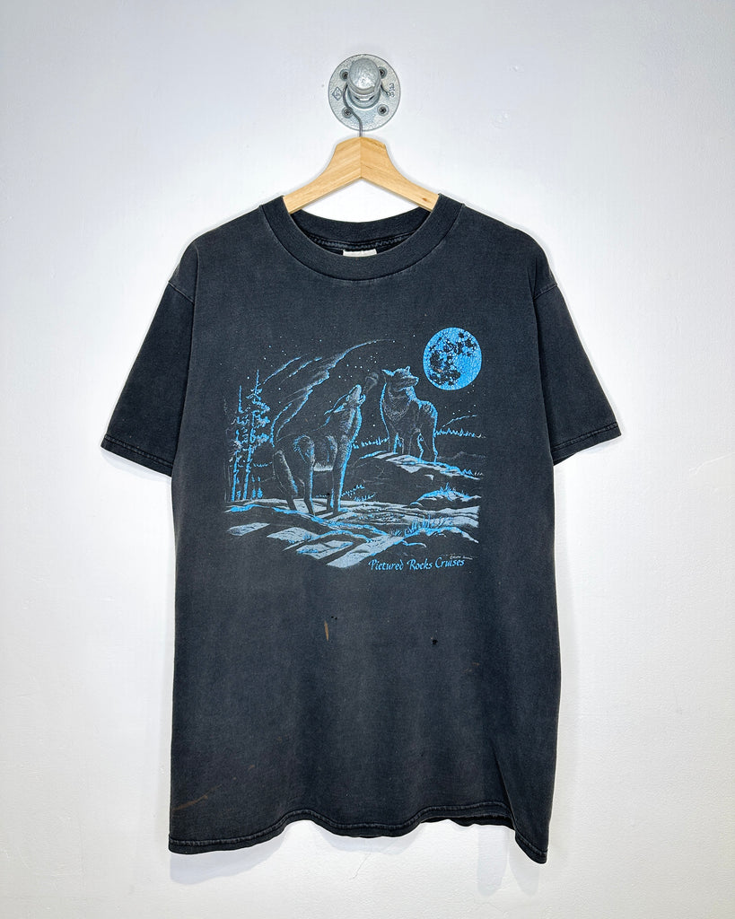 Vintage 90s Wolf Landscape Faded Black Tee Shirt