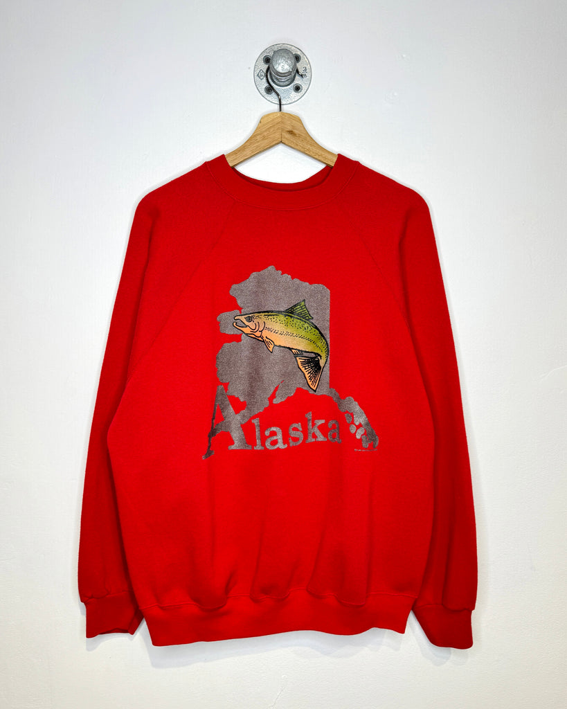 Vintage 90s Alaska Fish Red Crewneck Sweatshirt