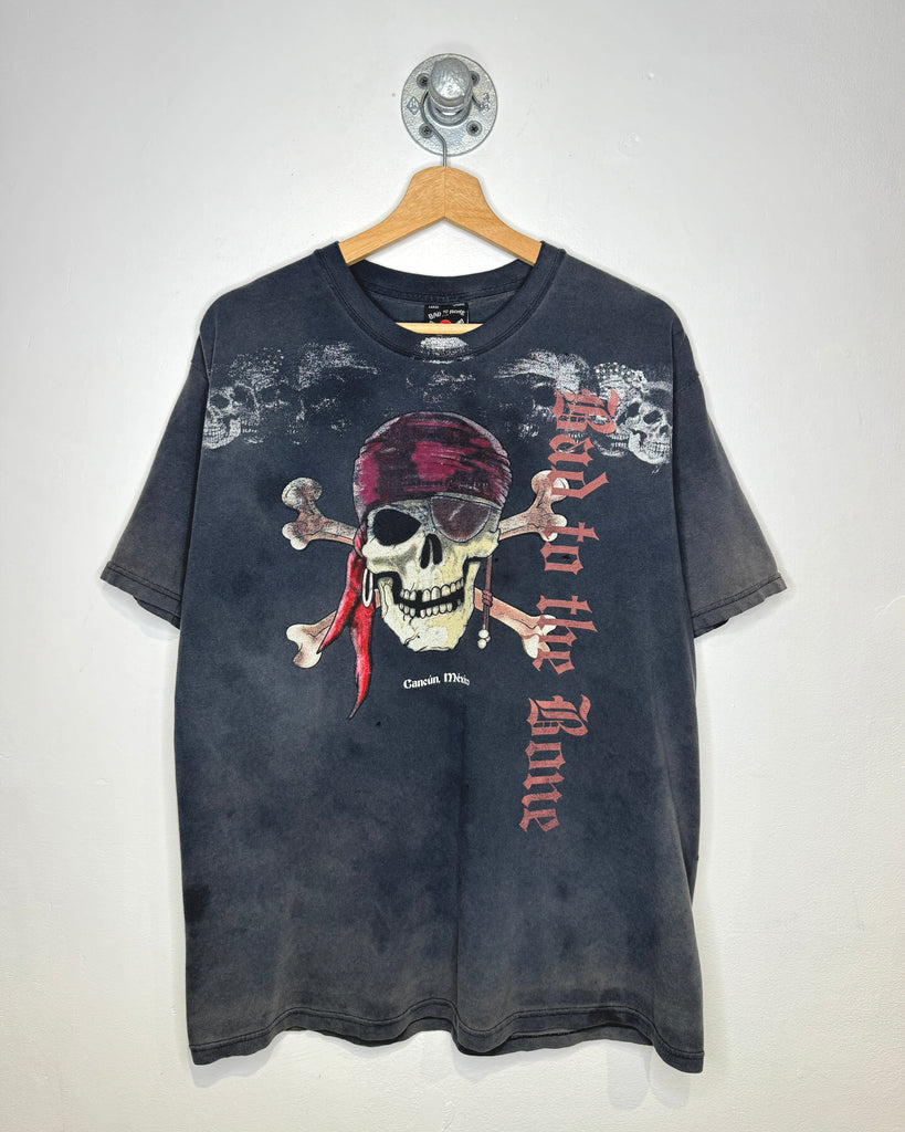Y2K Bad To The Bone Heavily Faded Black Tee Shirt