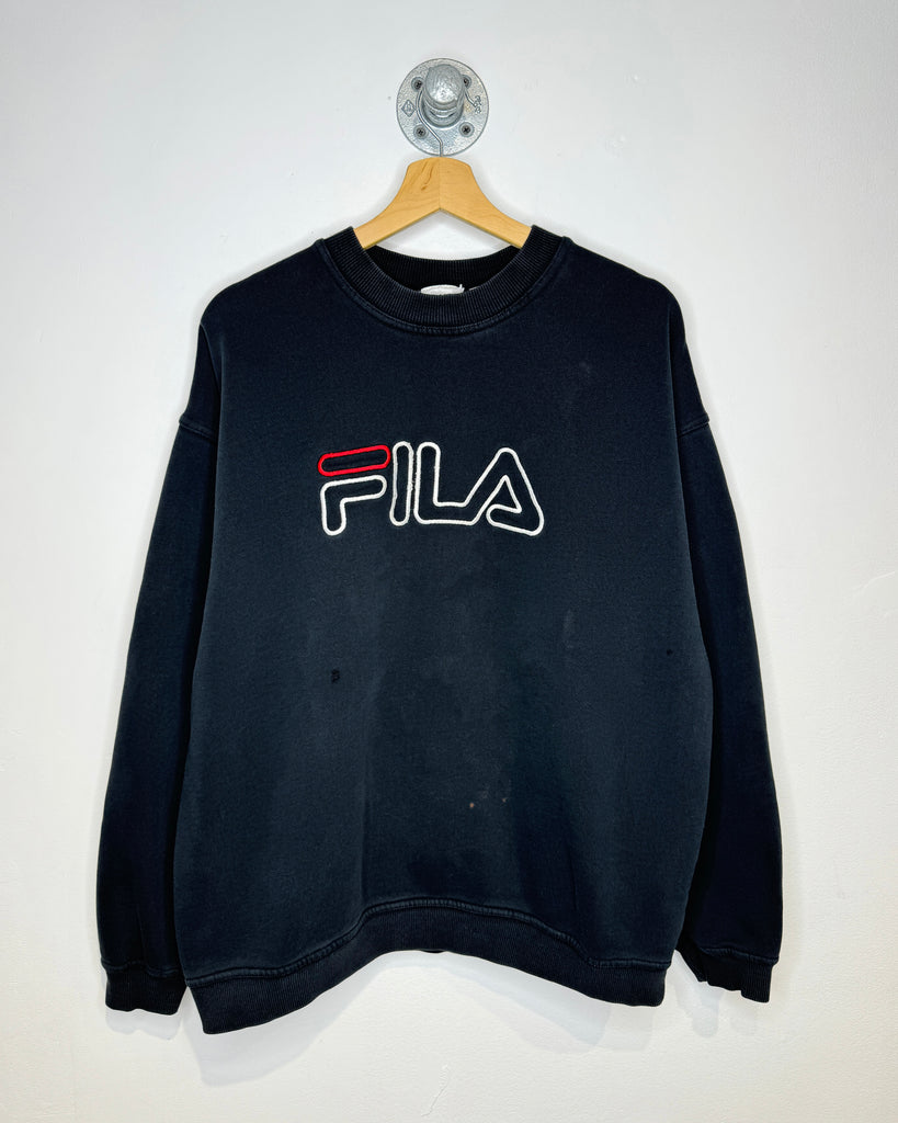 Vintage 90s Fila Faded Black Crewneck Sweatshirt