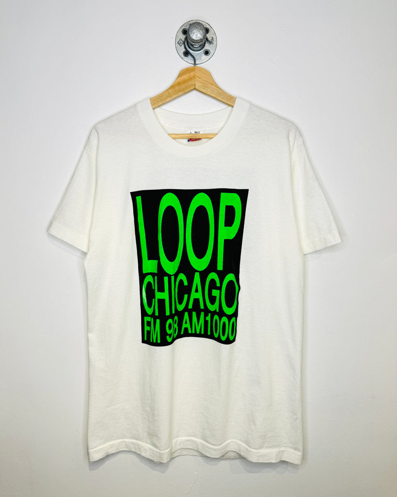 Vintage 90s Loop Chicago Radio White Tee Shirt