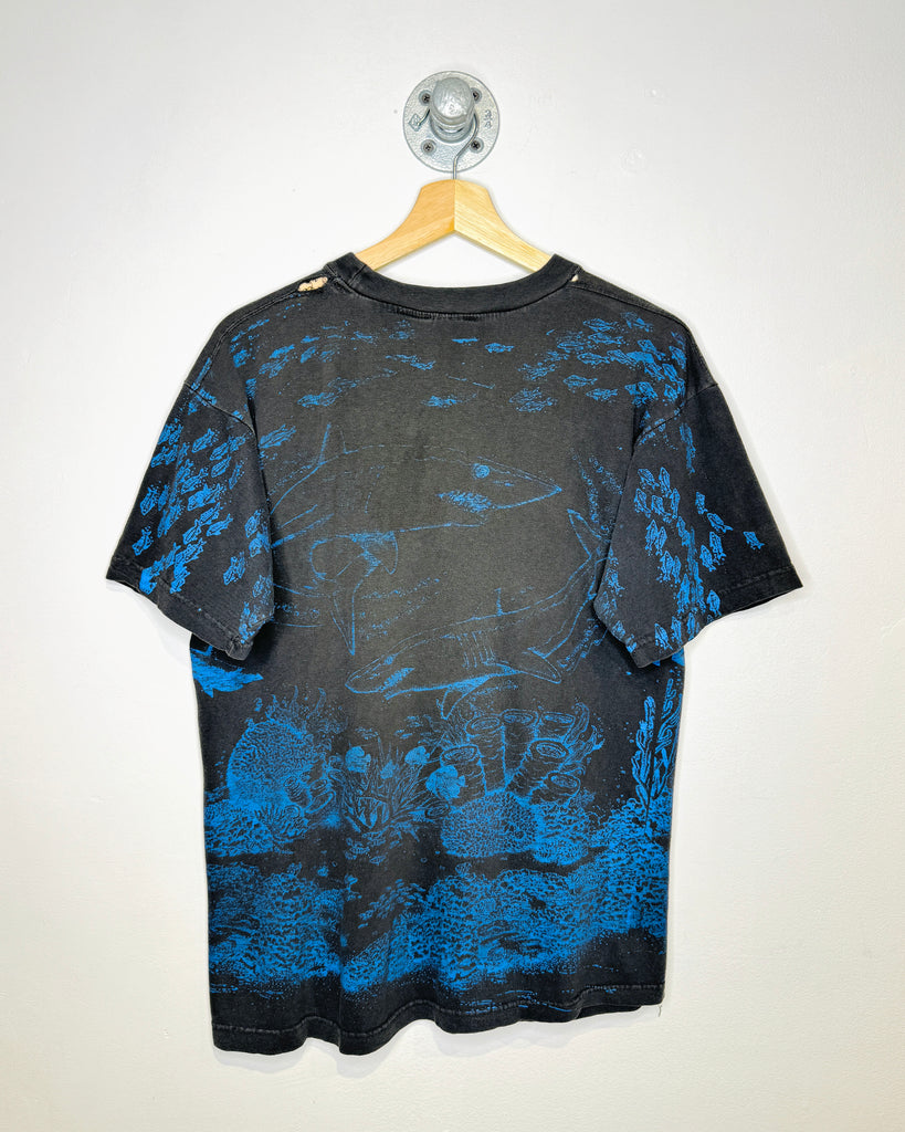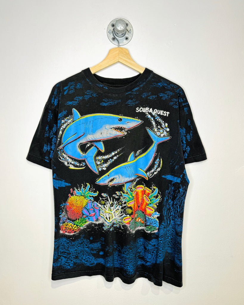 Vintage Scuba Quest All Over Print Faded Black Tee Shirt