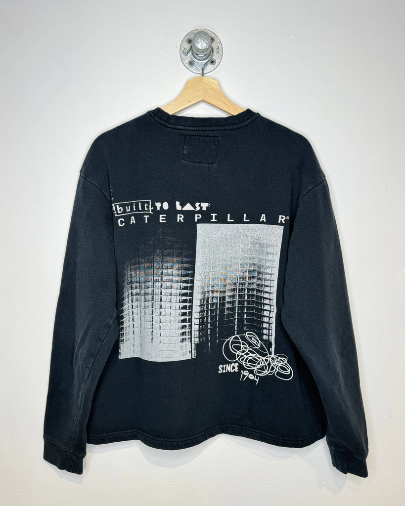 Vintage Caterpillar Built To Last Faded Black Crewneck Sweatshirt