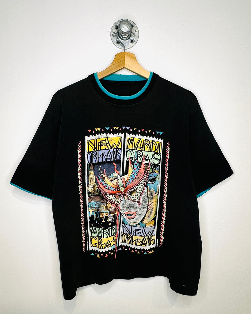 Vintage 1990 Mardi Gras New Orleans Faded Black Tee Shirt