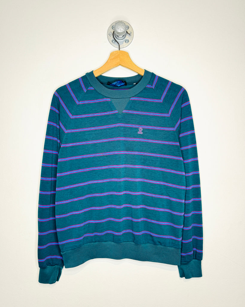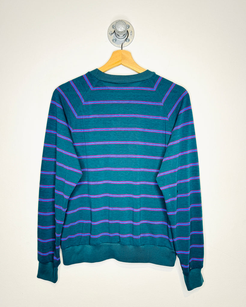 Vintage 90s Goola Gong Teal Striped Lightweight Sweatshirt
