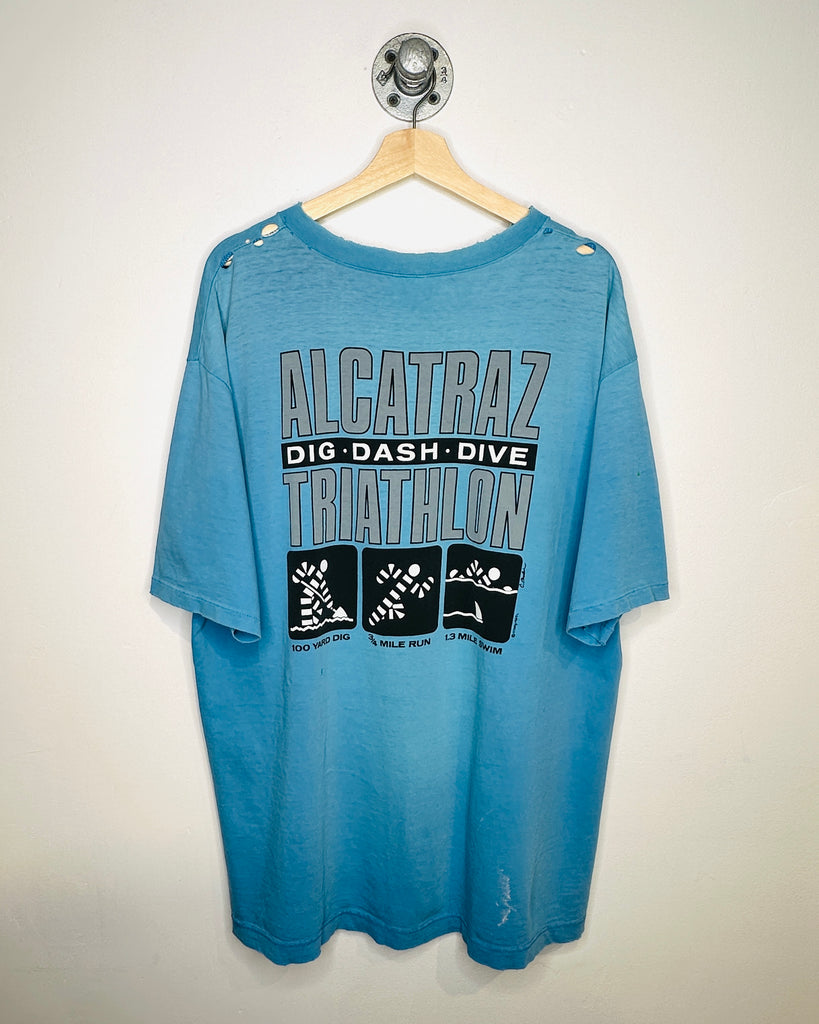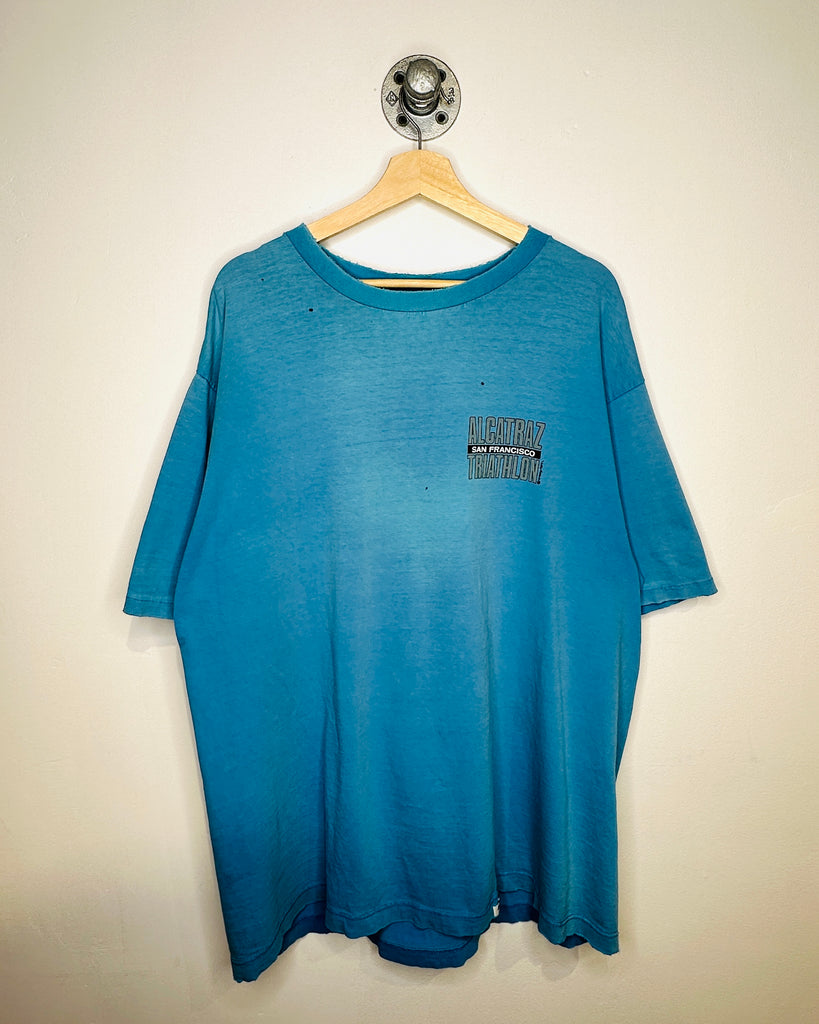 Vintage 90s Alcatraz Triathlon Distressed Blue Tee Shirt