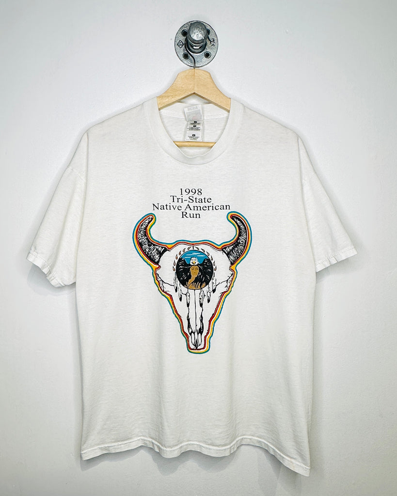 Vintage 1998 Tri State Native American Run White Tee Shirt