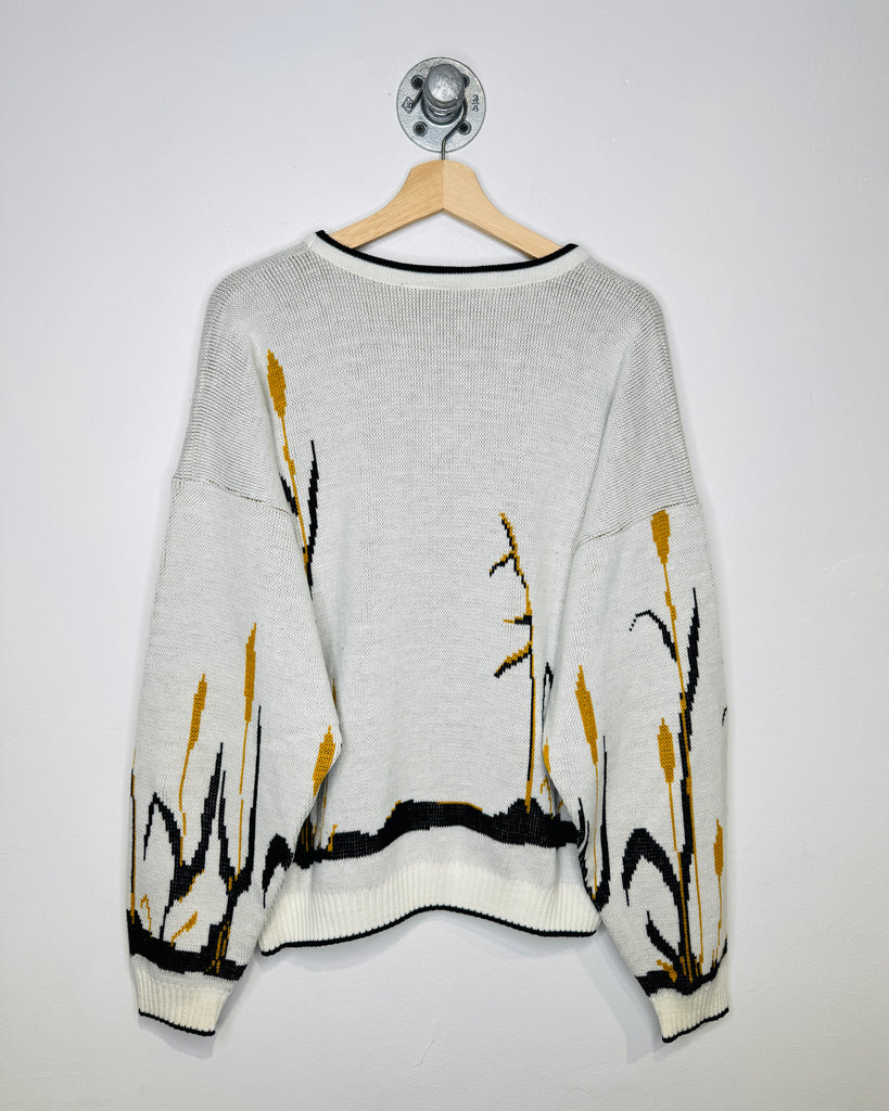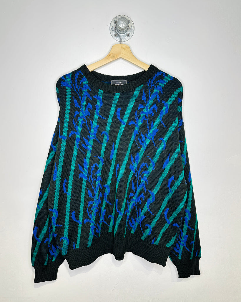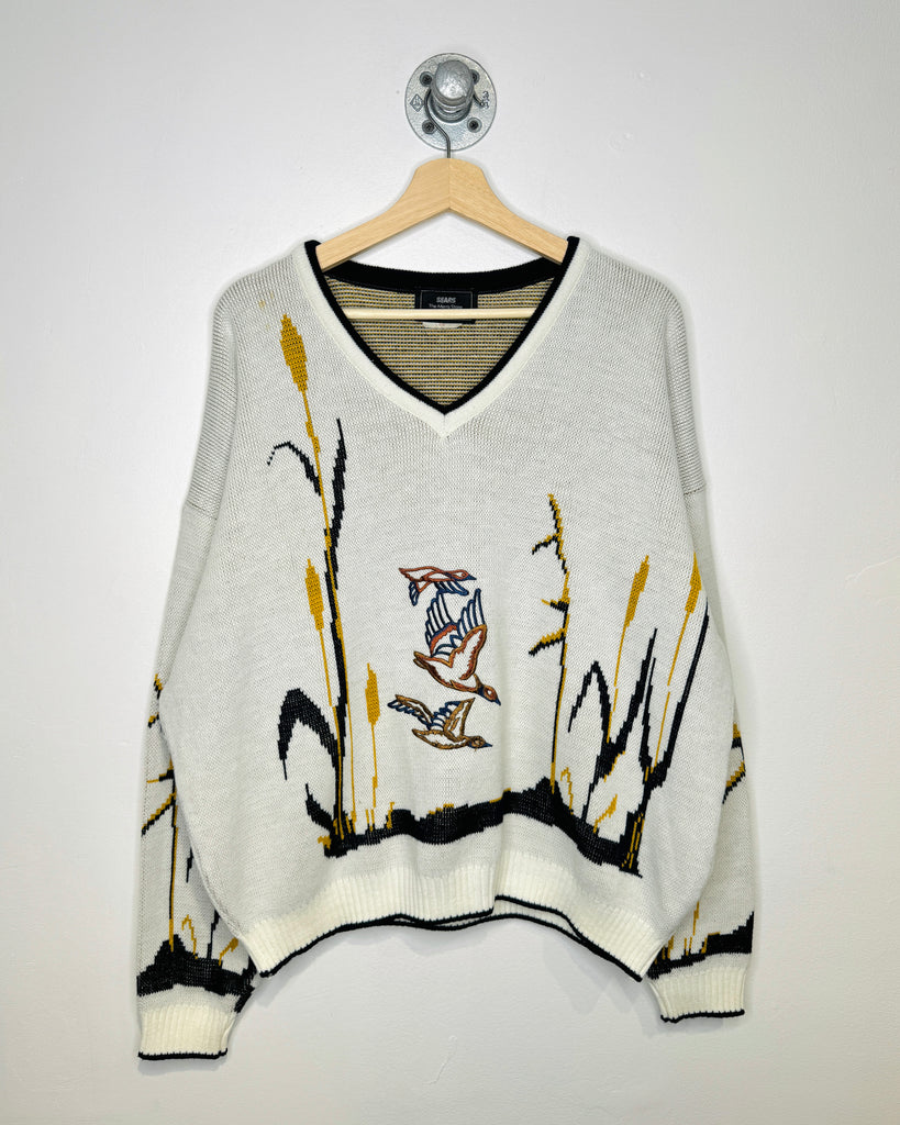 Vintage 80s Sears Embroidered Birds V-Neck Knit Sweater