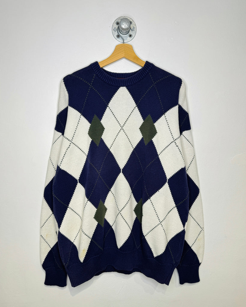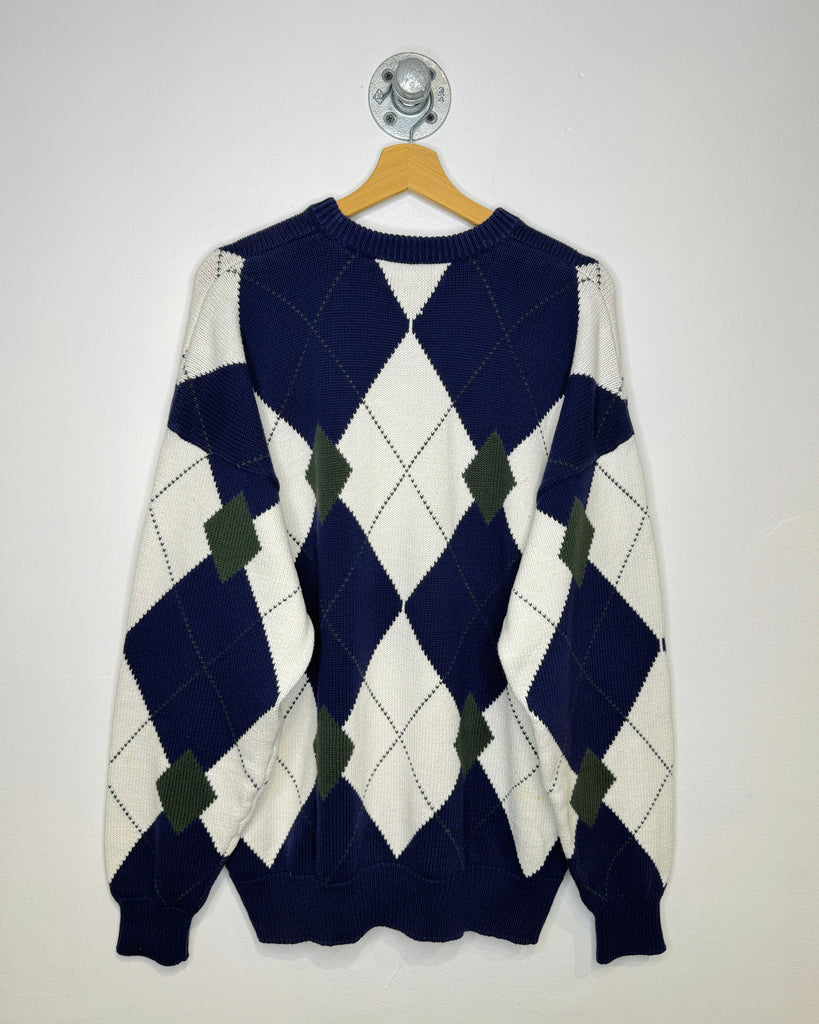 Vintage 90s Kenneth Stevens Argyle Pattern Knit Sweater