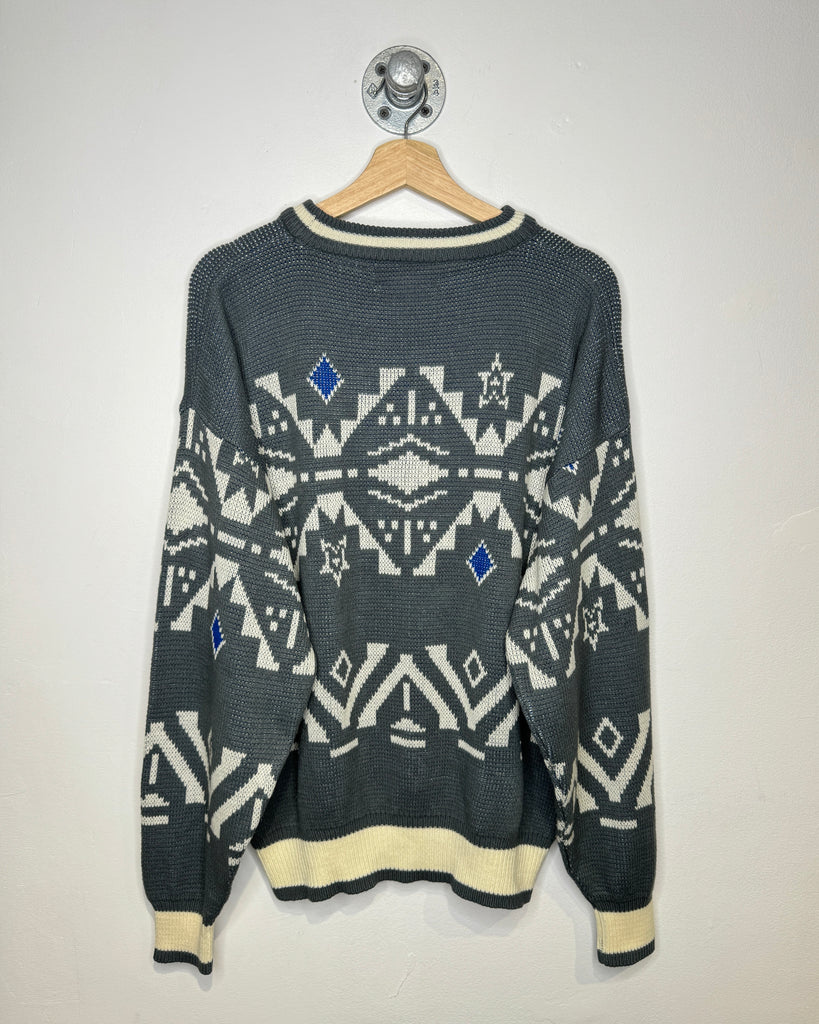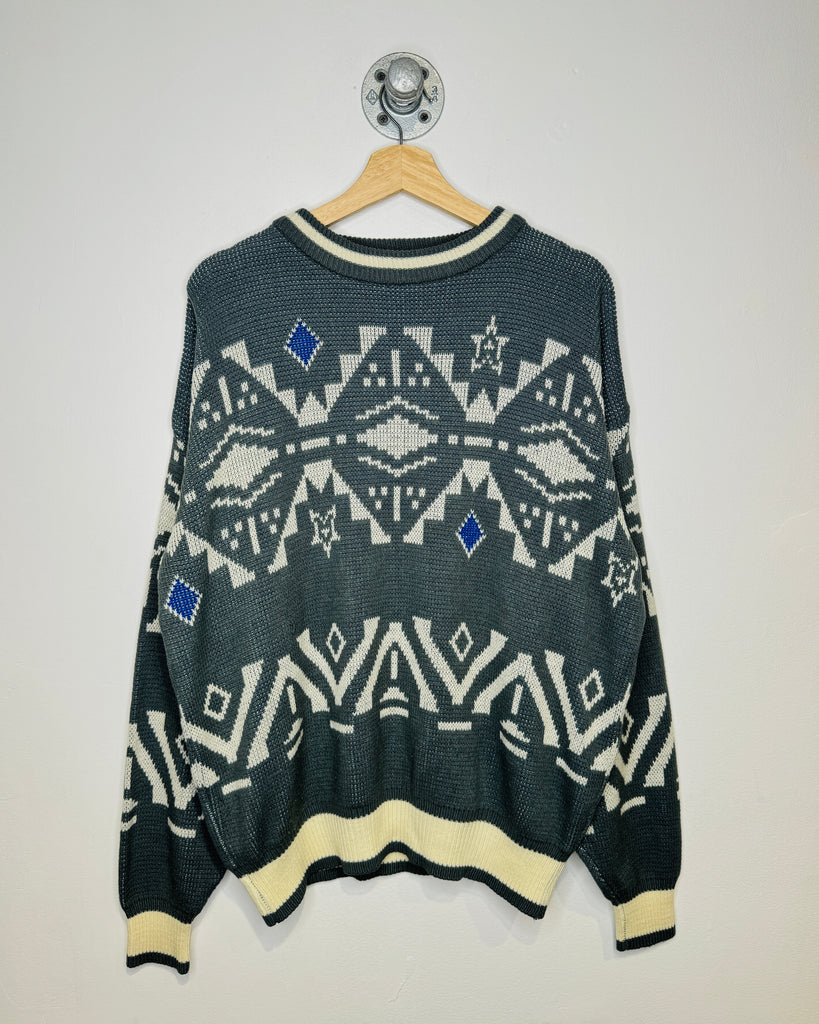 Vintage 90s Bronzini Abstract Grey Knit Sweater