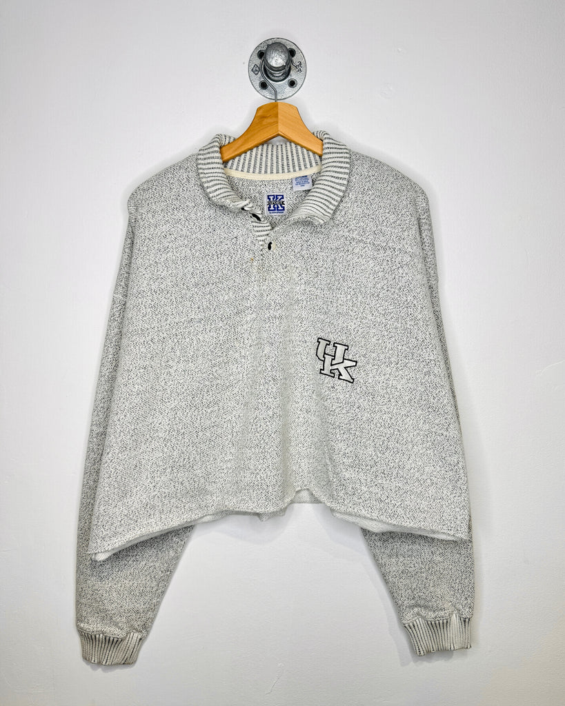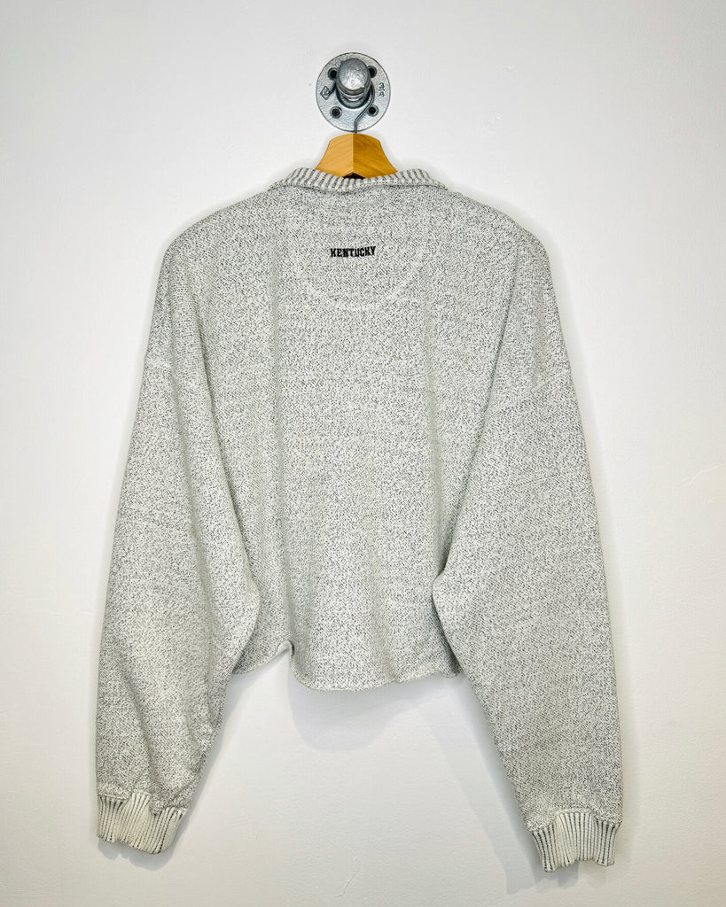 Vintage 90s UK Cropped Salt & Pepper Grey Henley Sweatshirt