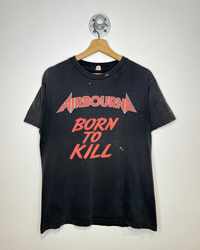 2000s Airborne Distressed & Faded Black Tee Shirt