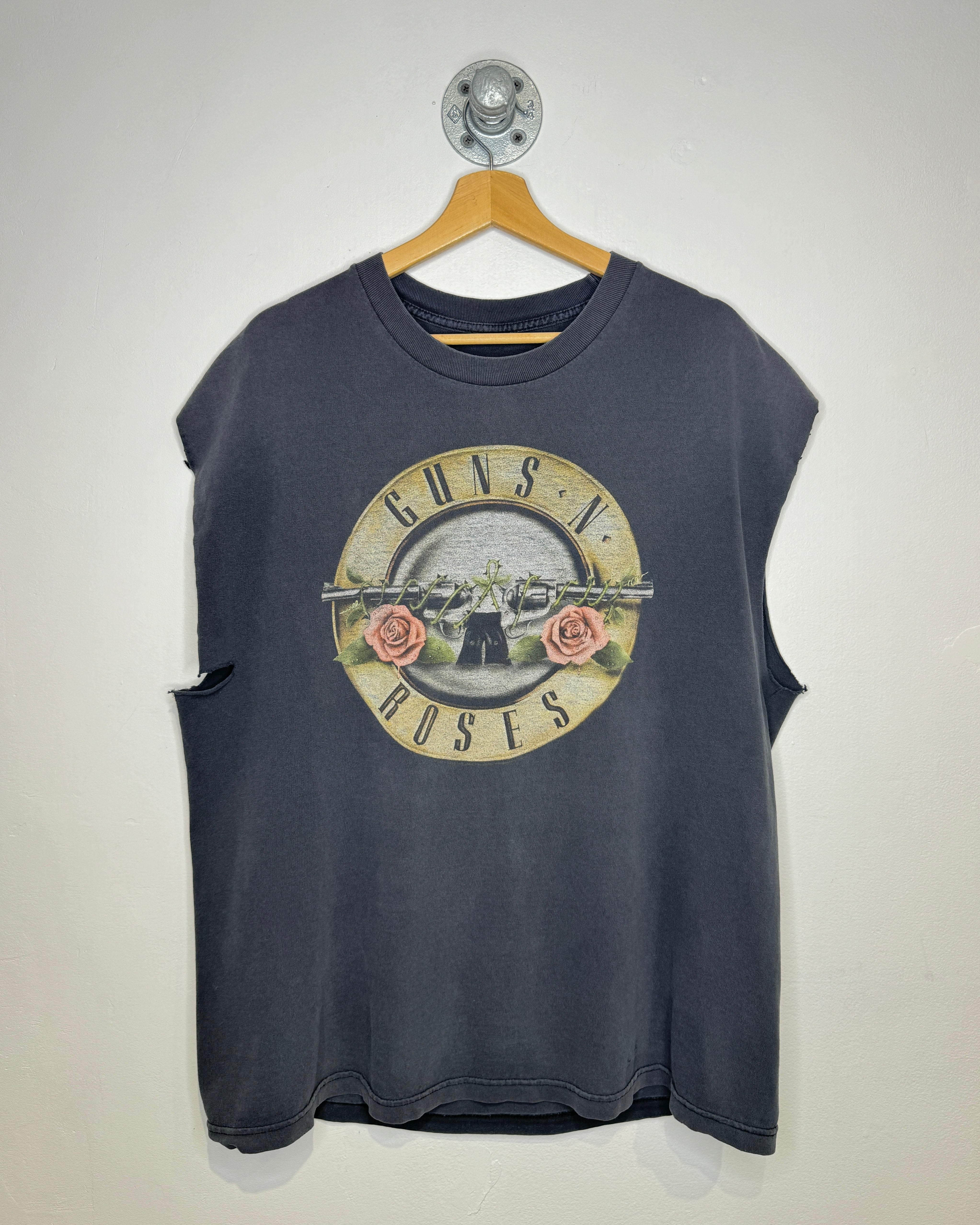 Guns N Roses Cut Off Faded Black Tee Shirt