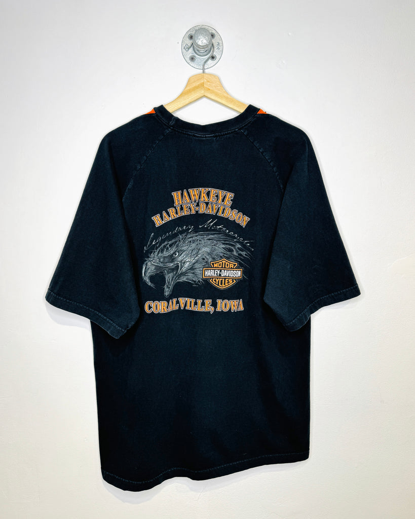 Vintage Harley Davidson Hawkeye Iowa Black Raglan Tee Shirt